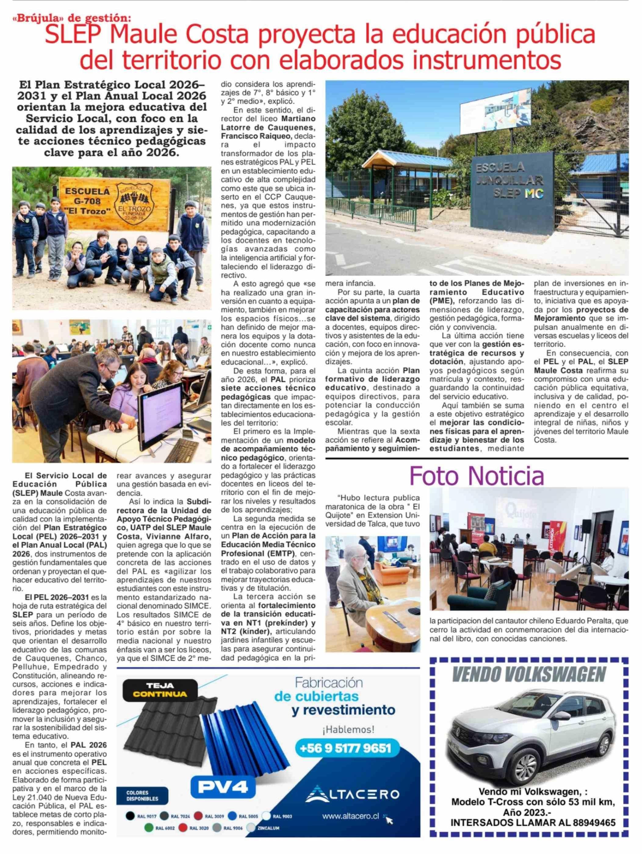 Título: SLEP Maule Costa proyecta la educación pública del territorio con elaborados instrumentos