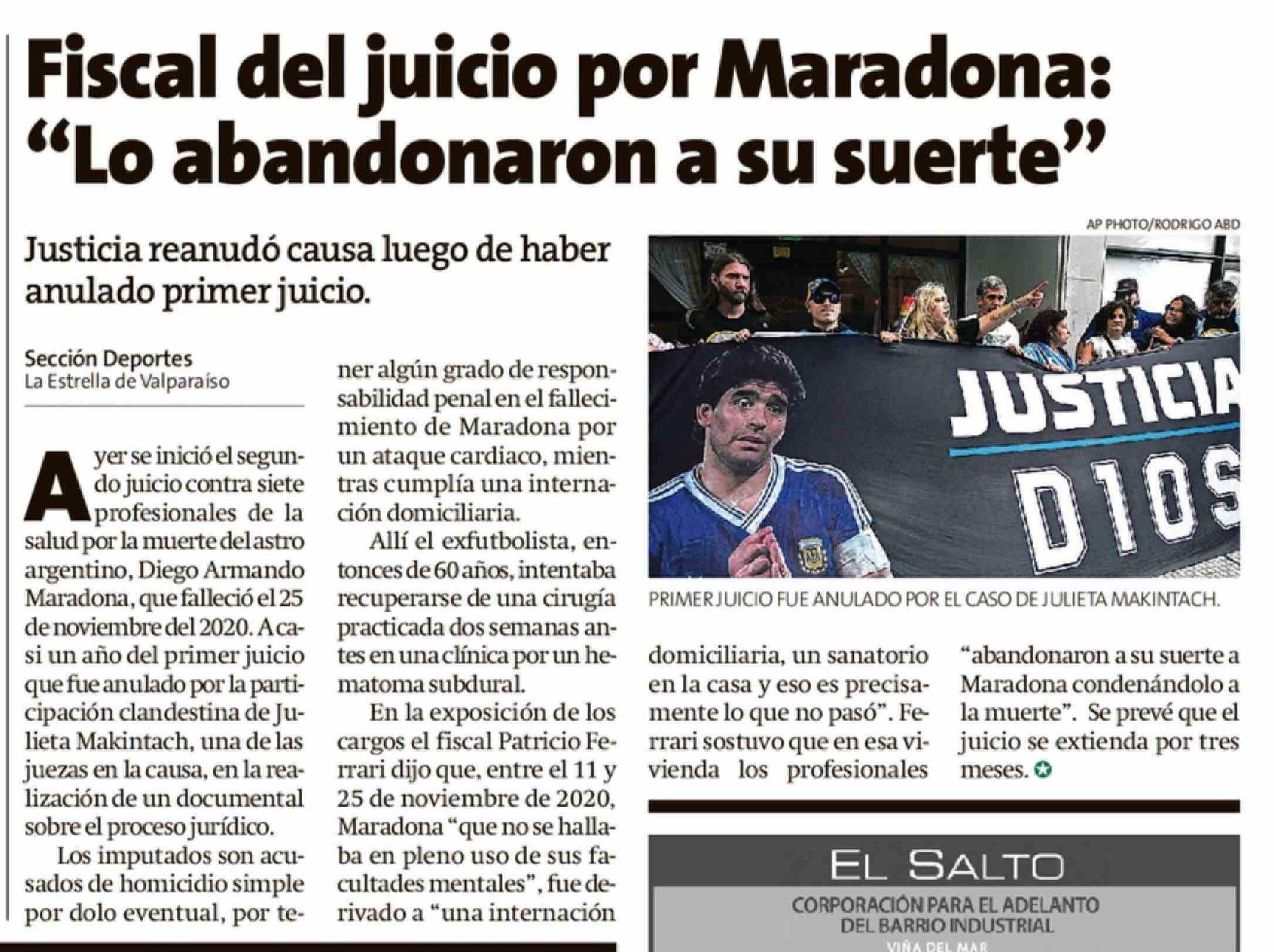 Título: Fiscal del juicio por Maradona: "Lo abandonaron a su suerte"