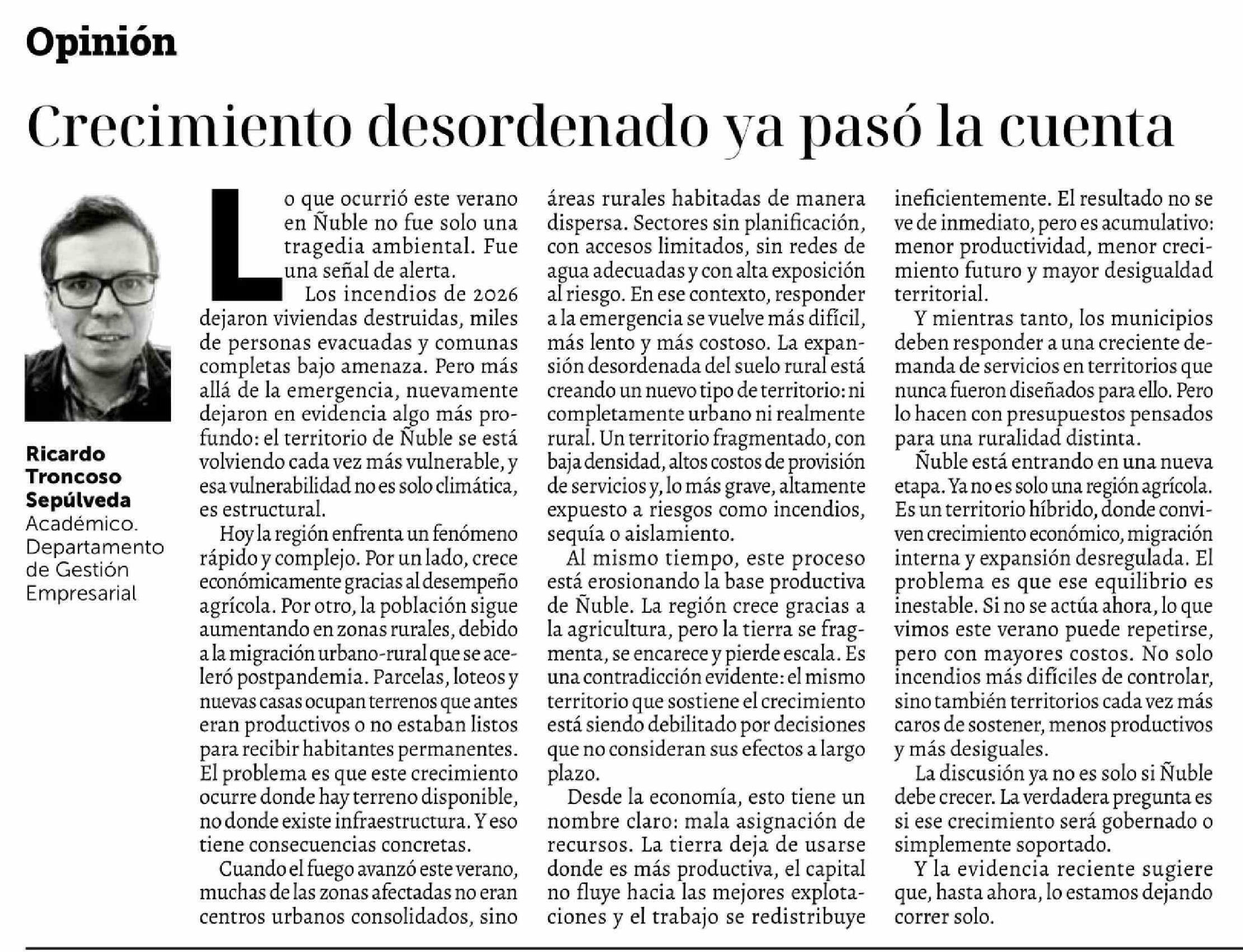 Fecha: 21-04-2026 Sector: Columnas de Opinión Región: Región del Ñuble
