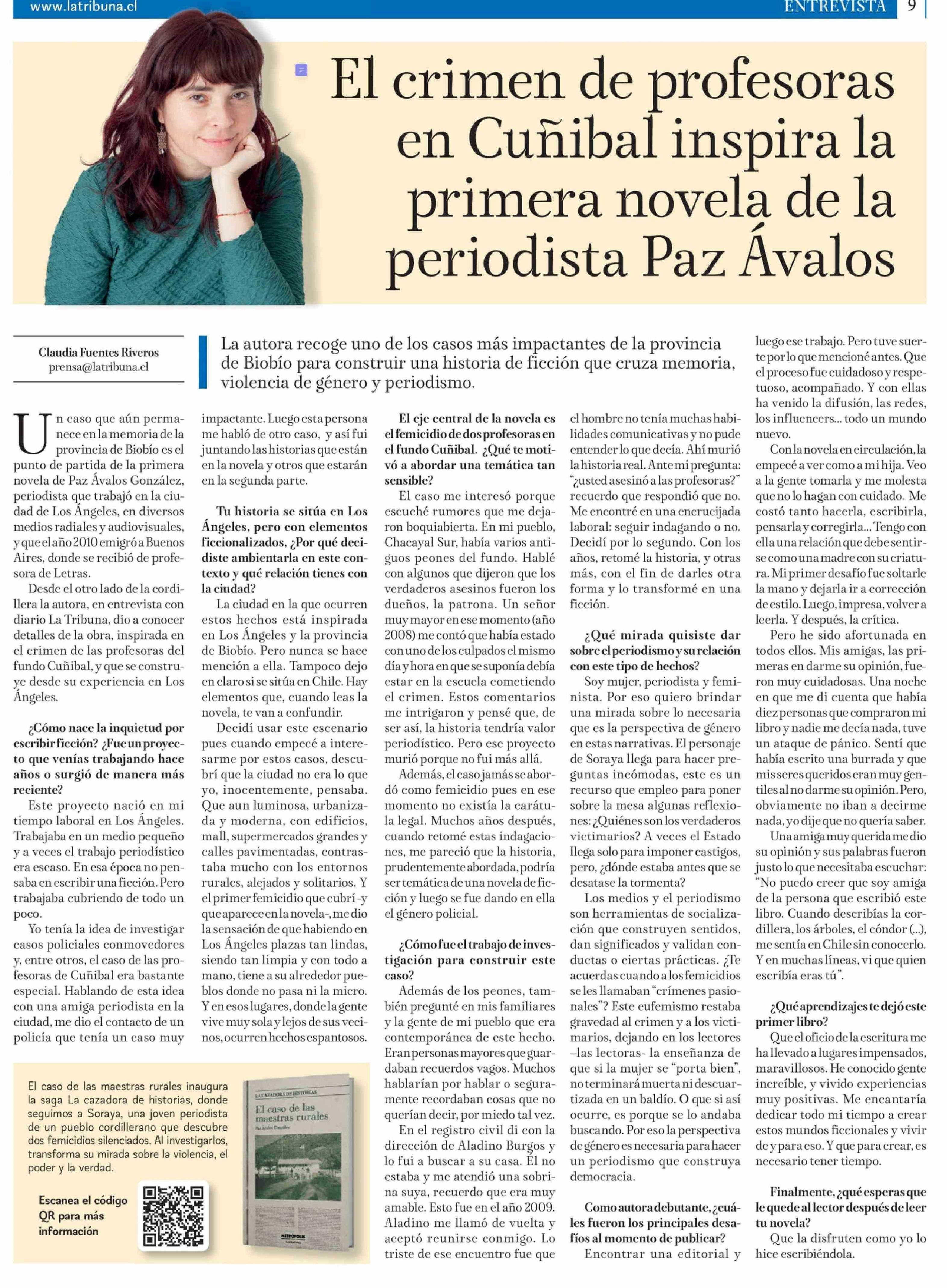 Título: El crimen de profesoras en Cuñibal inspira la primera novela de la periodista Paz Ávalos