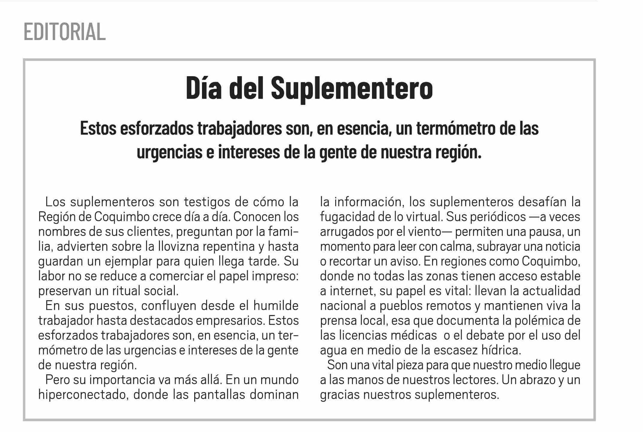 EDITORIAL: Día del Suplementero 25-05-2025 El Día |