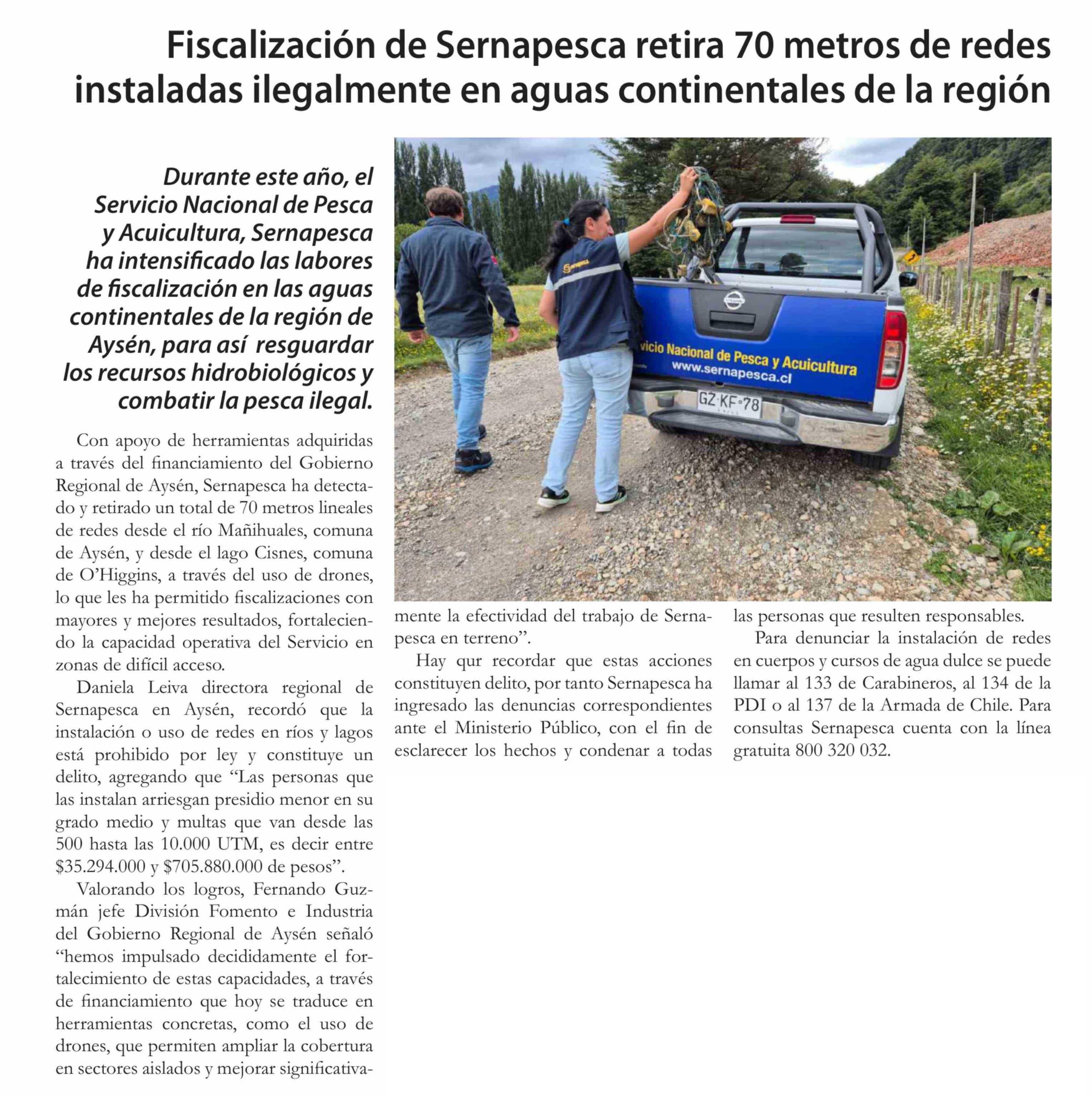 Título: Fiscalización de Sernapesca retira 70 metros de redes instaladas ilegalmente en aguas continentales de la región