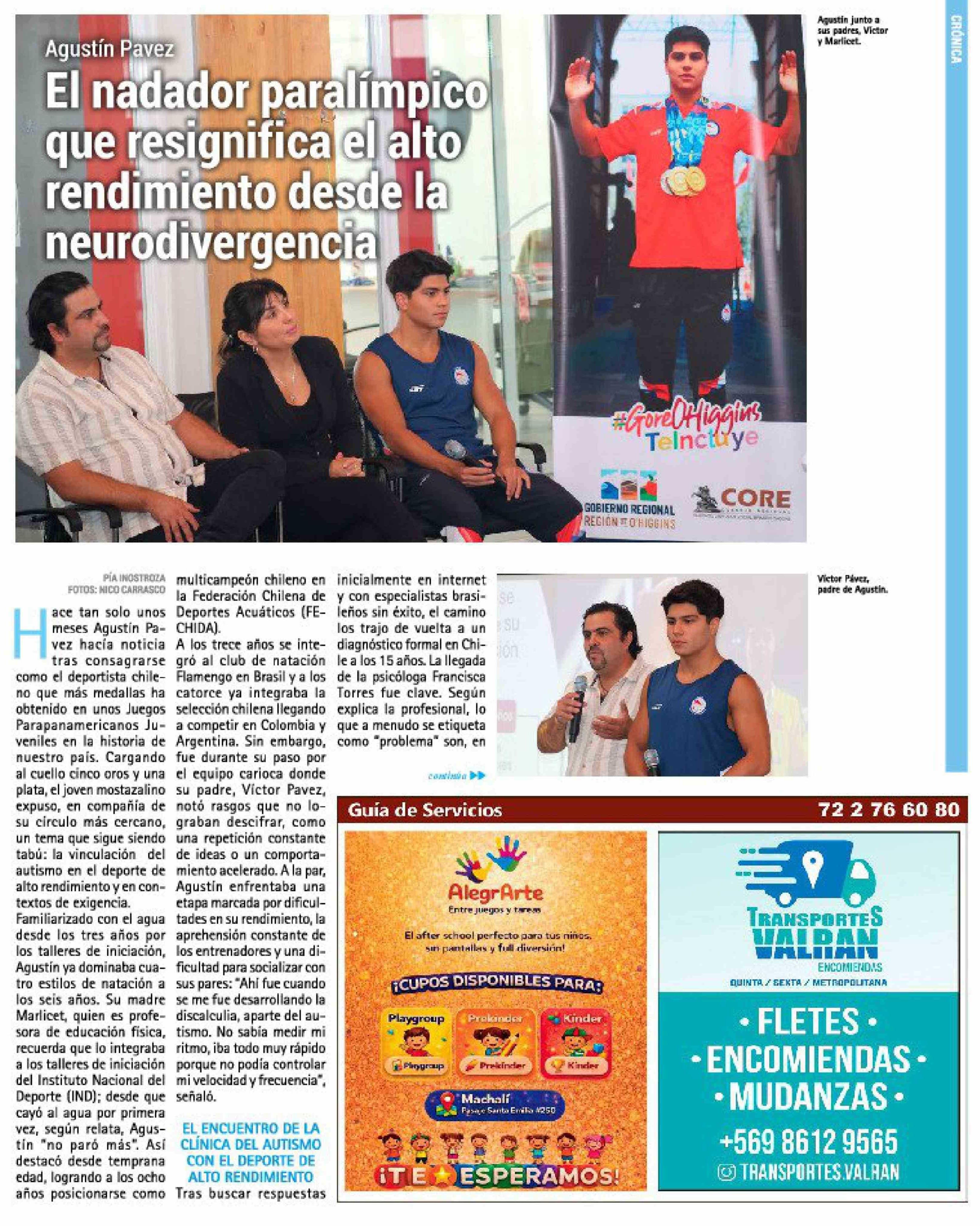 El nadador paralímpico que resignifica el alto rendimiento desde la neurodivergencia 24-03-2026 El Rancagüino |