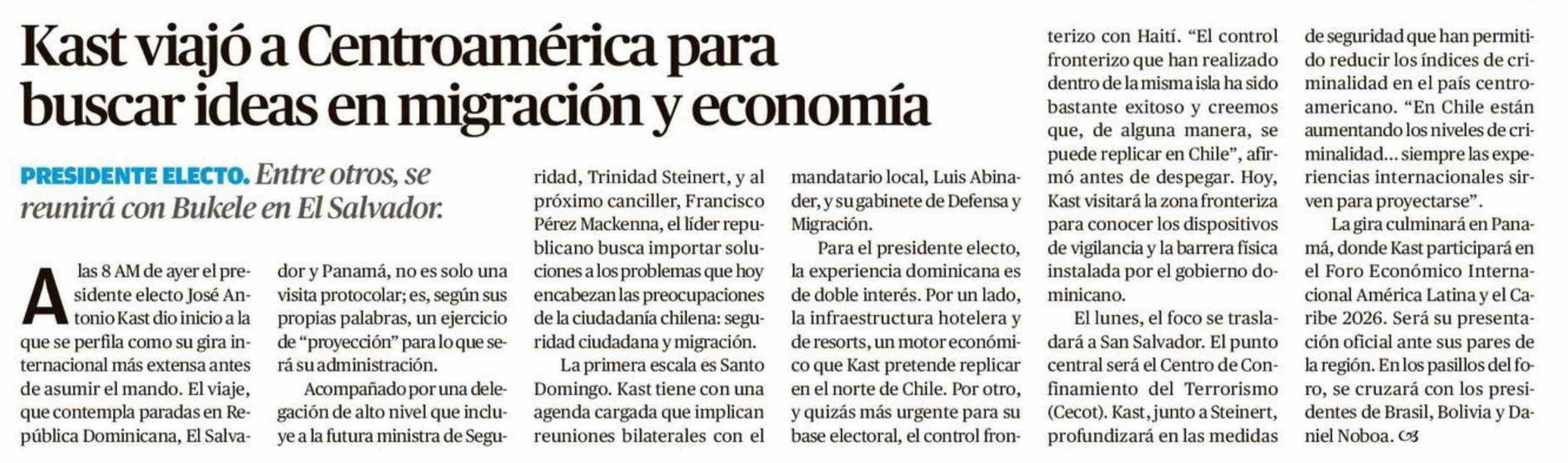 Título: Kast viajó a Centroamérica para buscar ideas en migración y economía