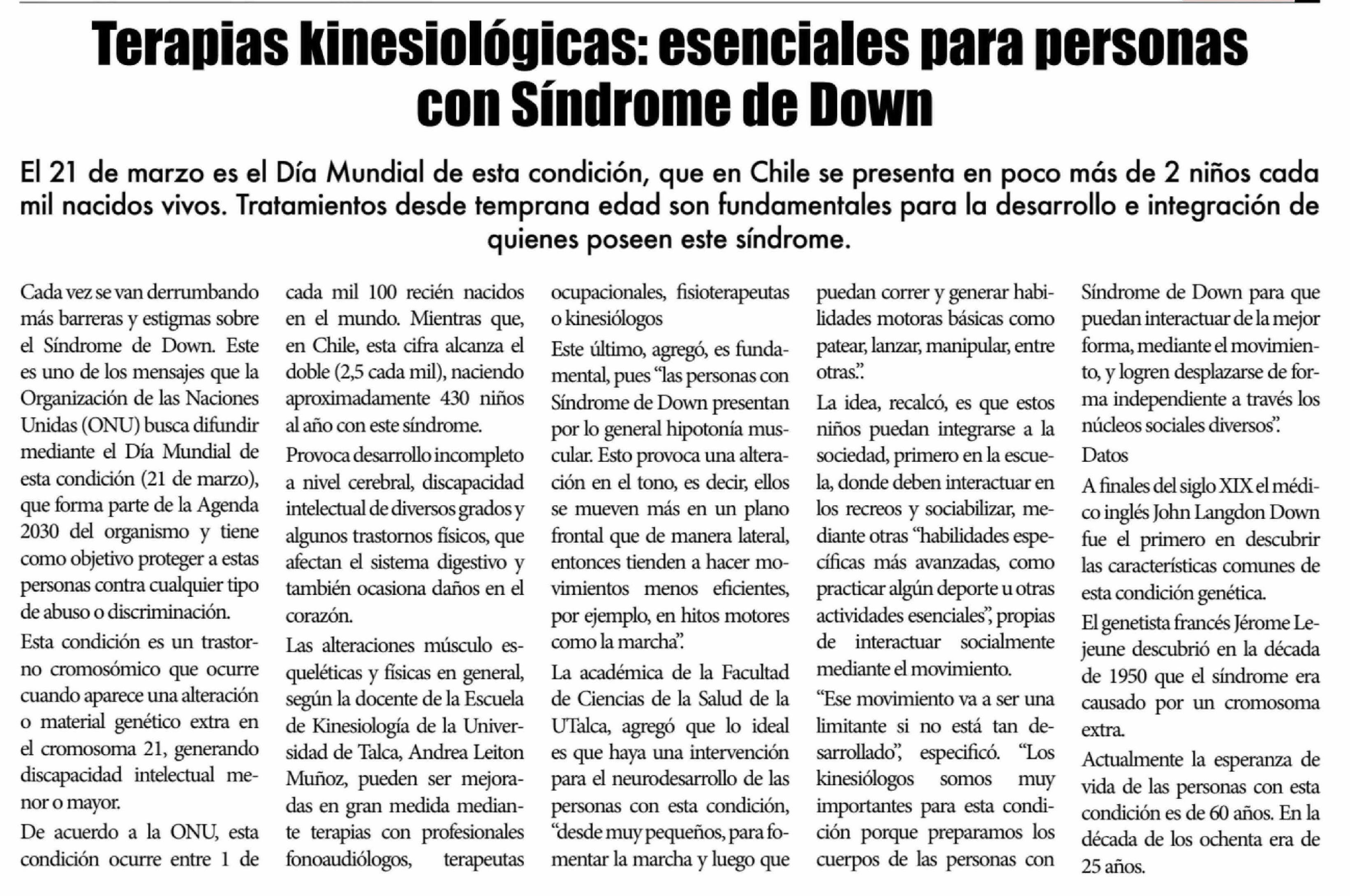 Título: Terapias kinesiológicas: esenciales para personas con Síndrome de Down