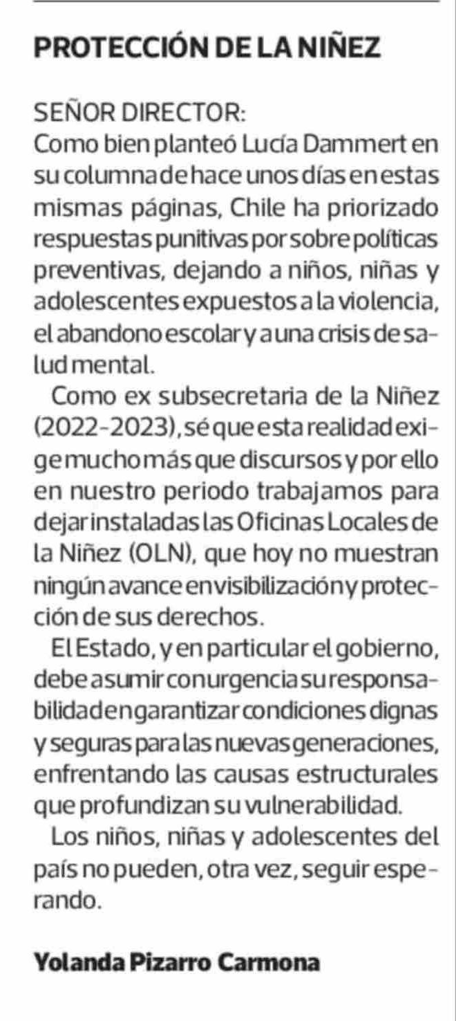 PROTECCIÓN DE LA NIÑEZ 19-04-2025 La Tercera |