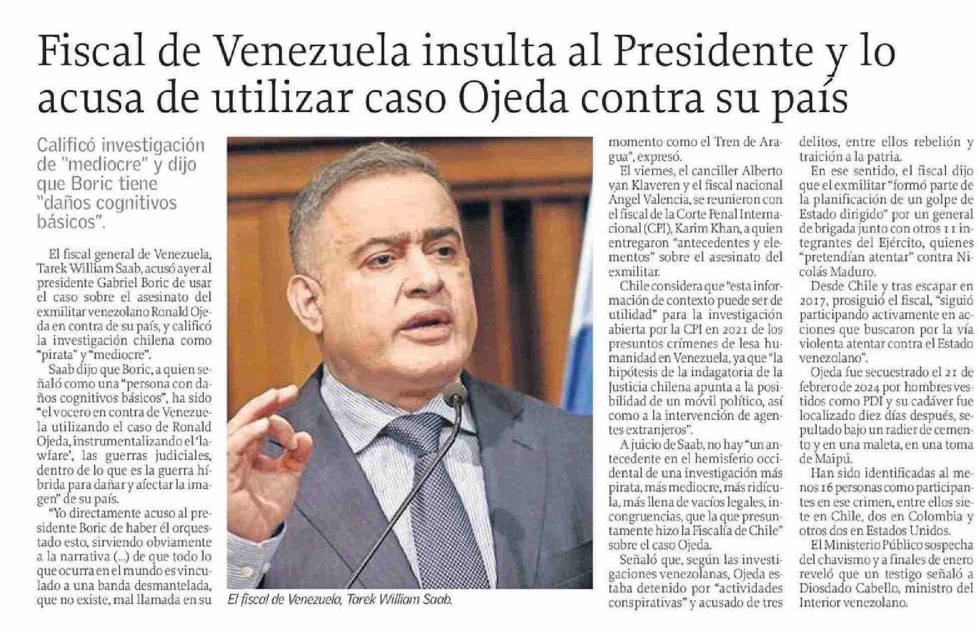 Fiscal de Venezuela insulta al Presidente y lo acusa de utilizar caso Ojeda contra su país 01-04-2025 El Sur |
