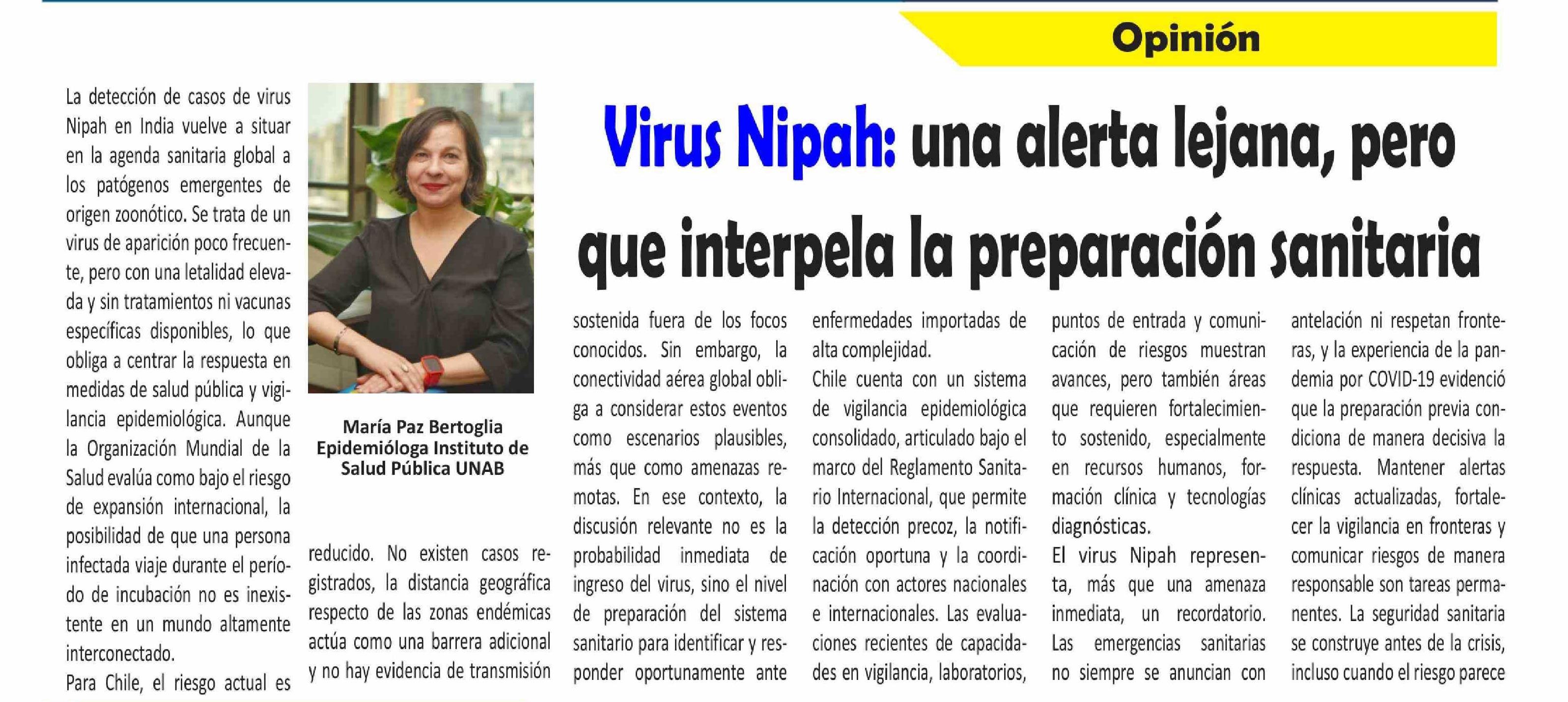 | Título: | COLUMNAS DE OPINIÓN: una alerta lejana, pero que interpela la preparación sanitaria |