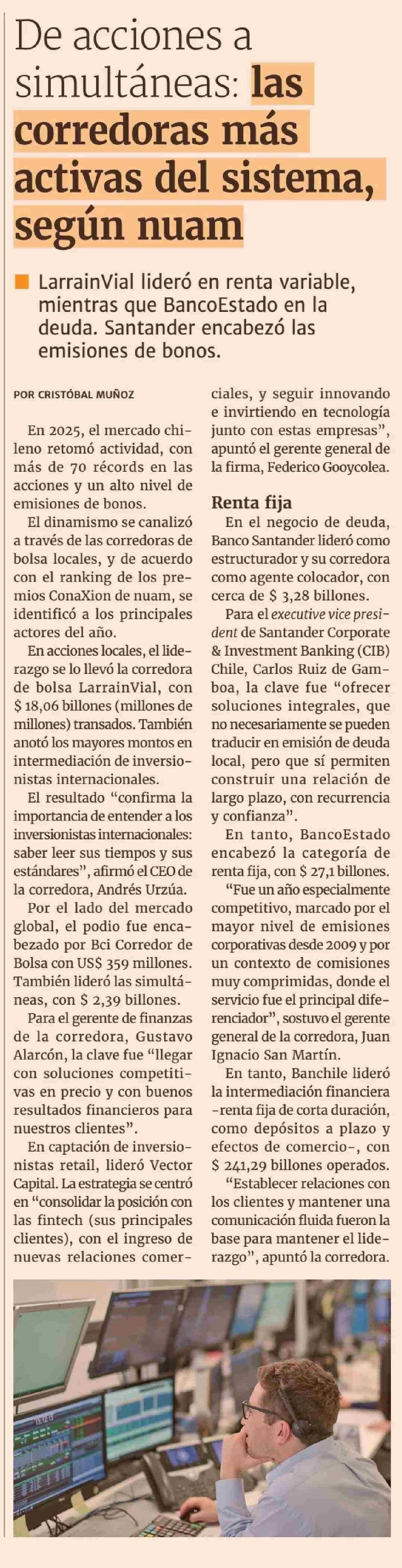 De acciones a simultáneas: las corredoras más activas del sistema, según nuam 22-01-2026 Diario Financiero |