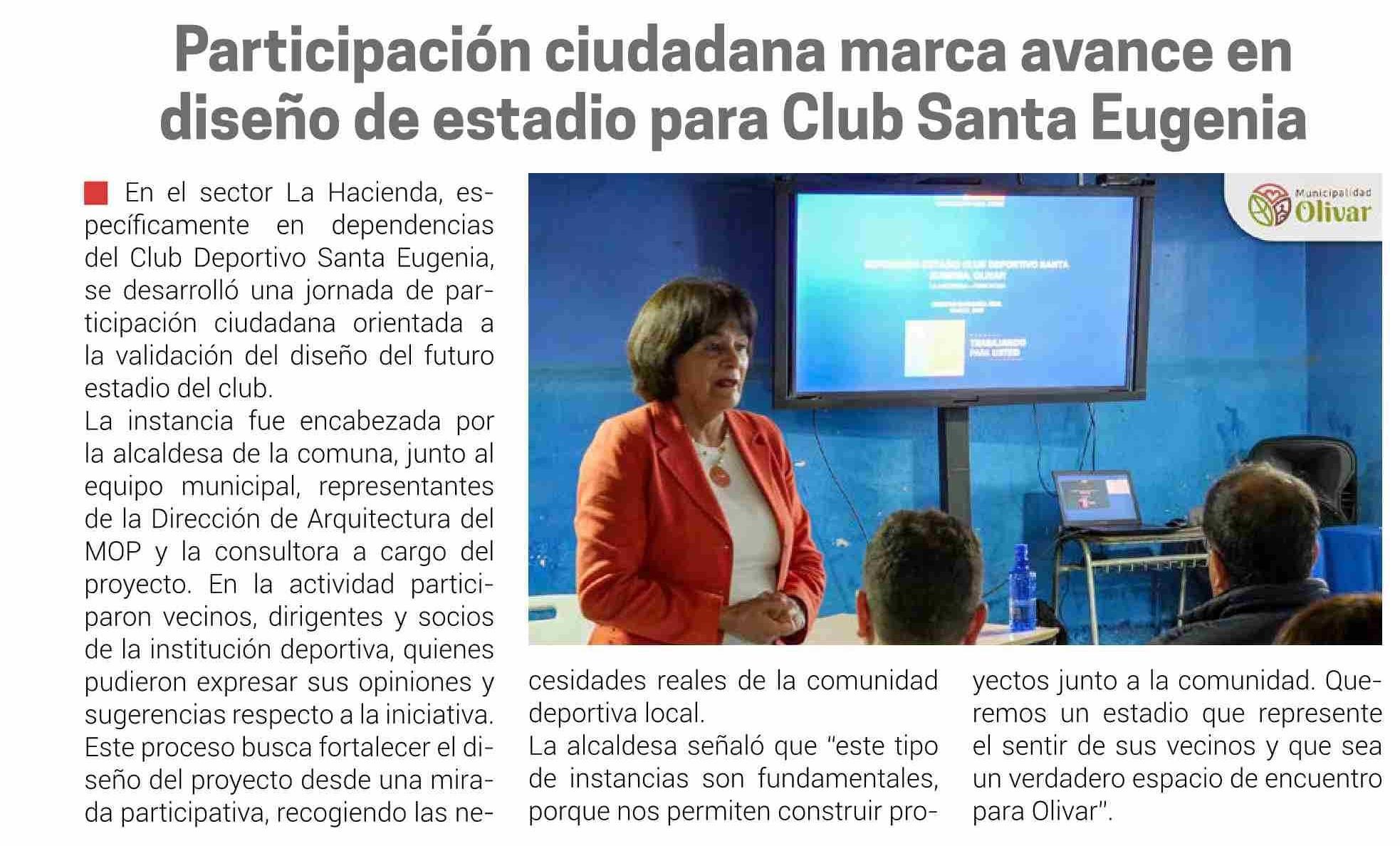 | Título: | Participación ciudadana marca avance en diseño de estadio para Club Santa Eugenia |
