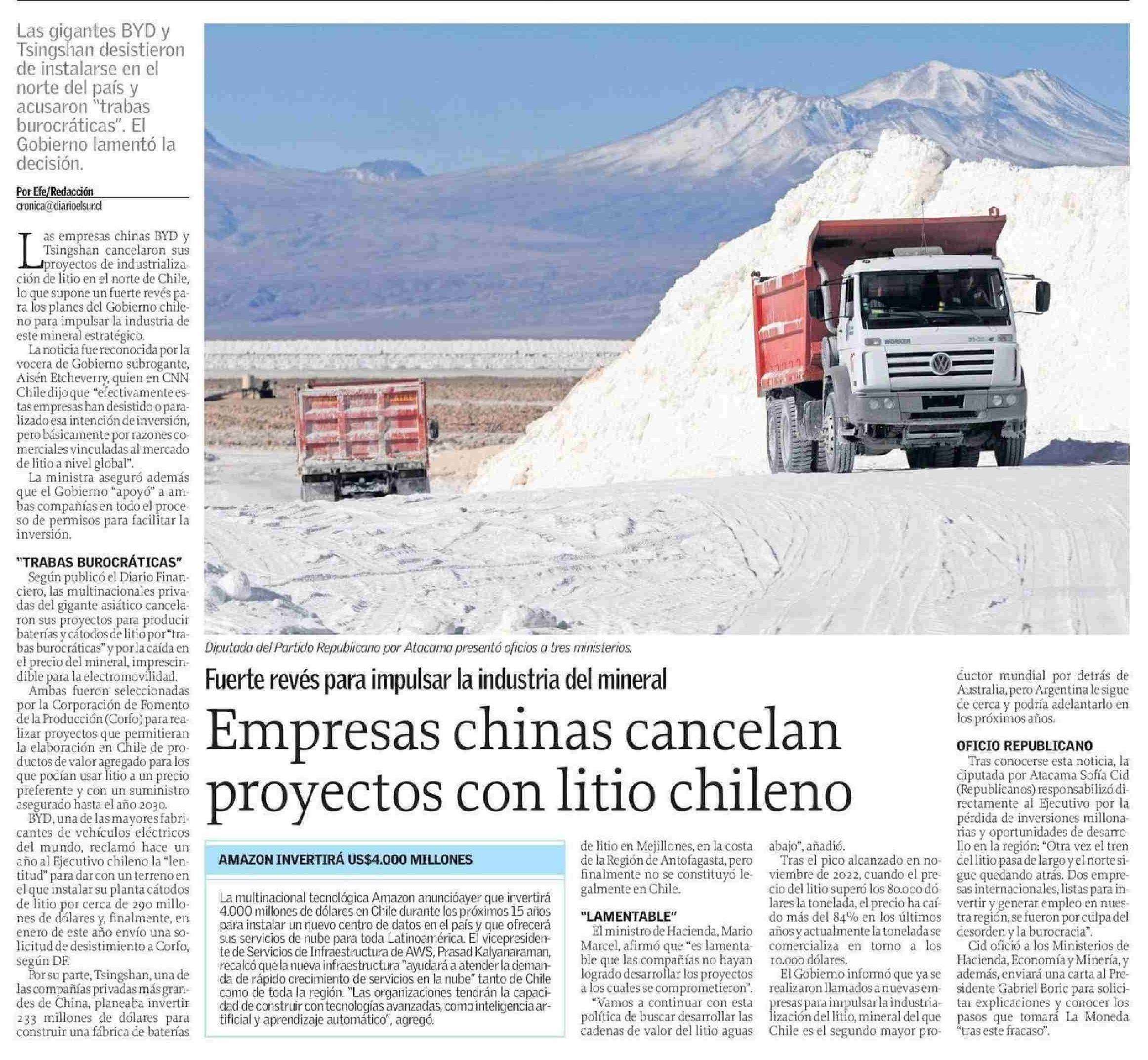 Empresas chinas cancelan proyectos con litio chileno 08-05-2025 El Sur |