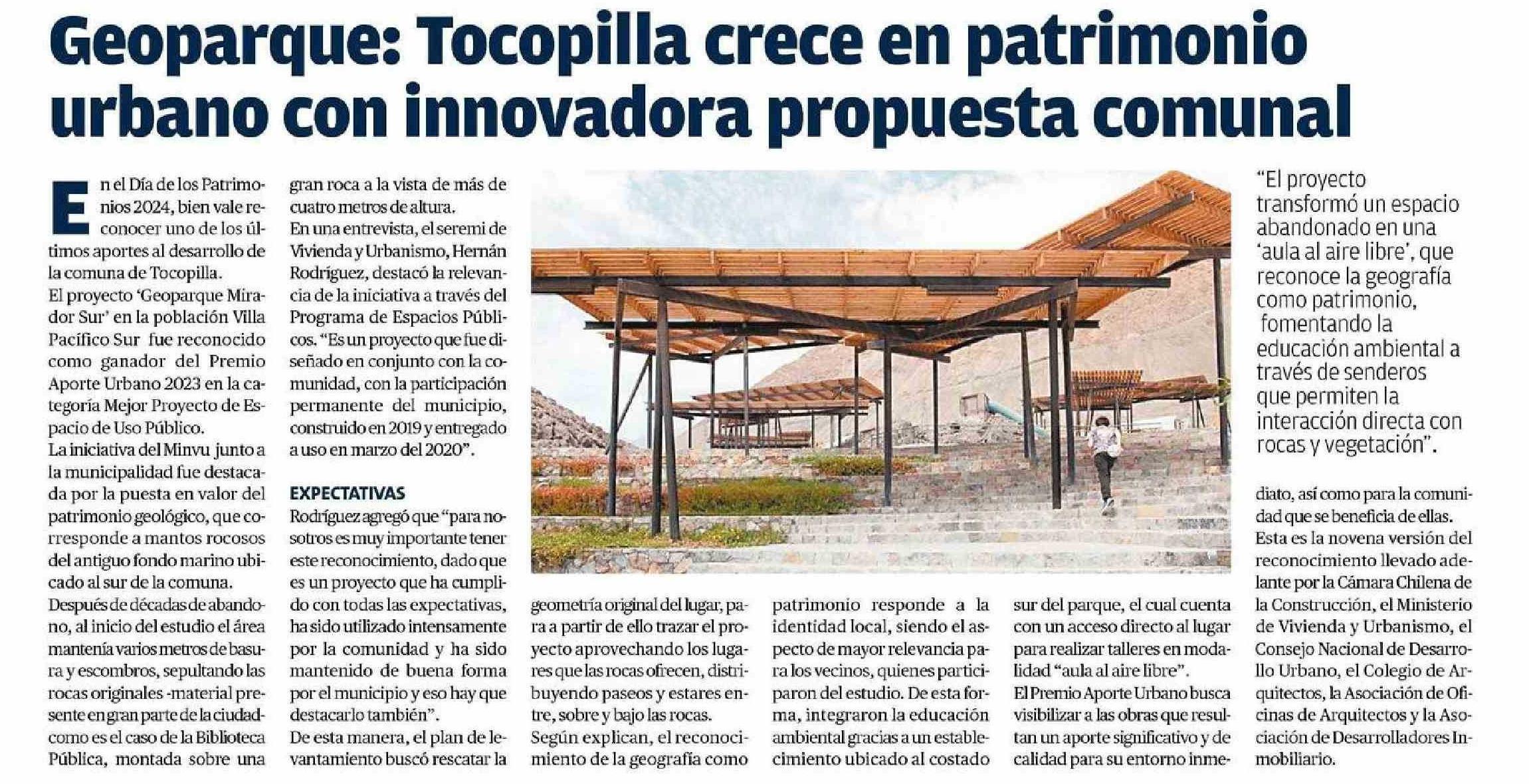 Geoparque: Tocopilla crece en patrimonio urbano con innovadora propuesta comunal 25-05-2024 La Estrella de Tocopilla |