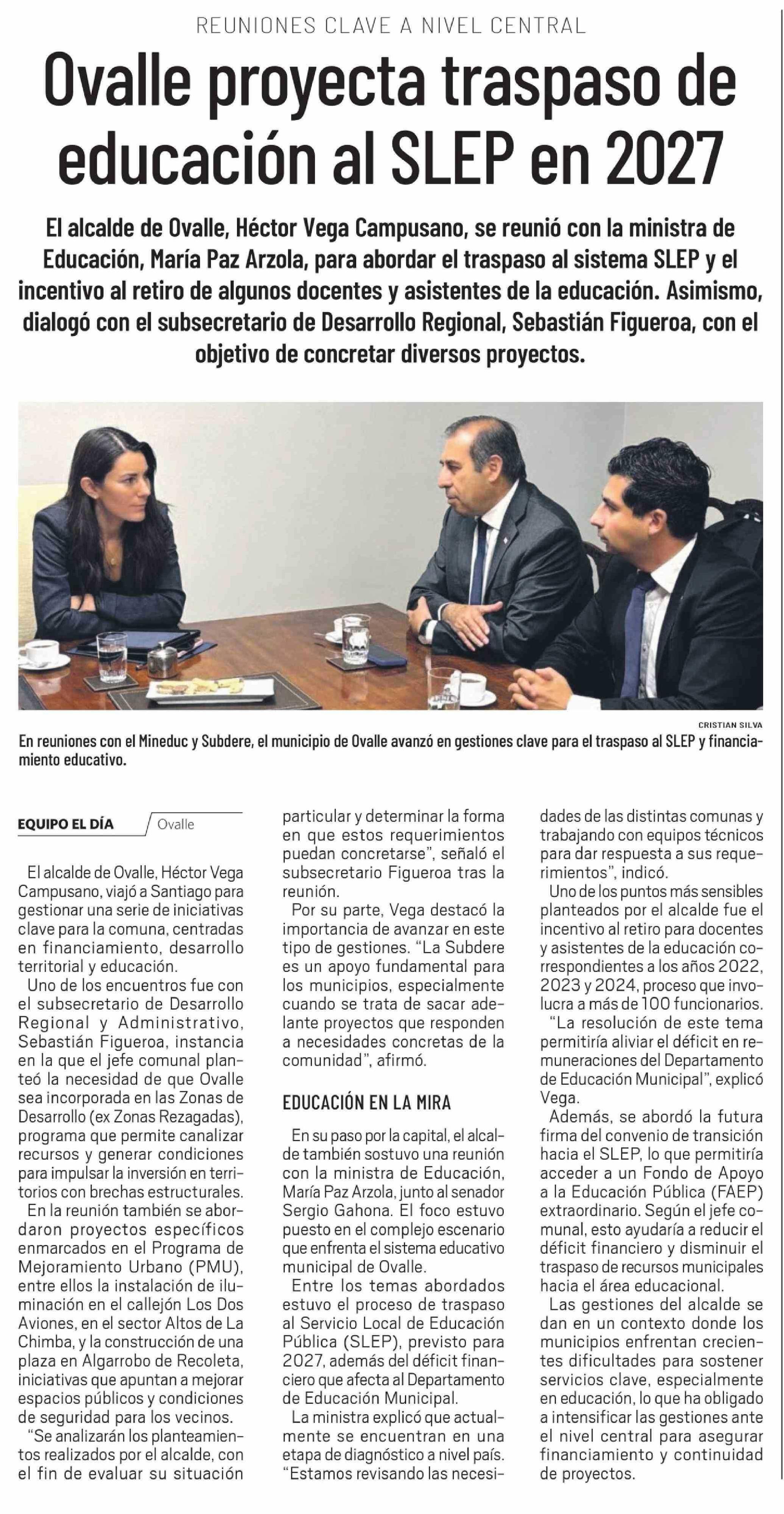 | Título: | Ovalle proyecta traspaso de educación al SLEP en 2027 |