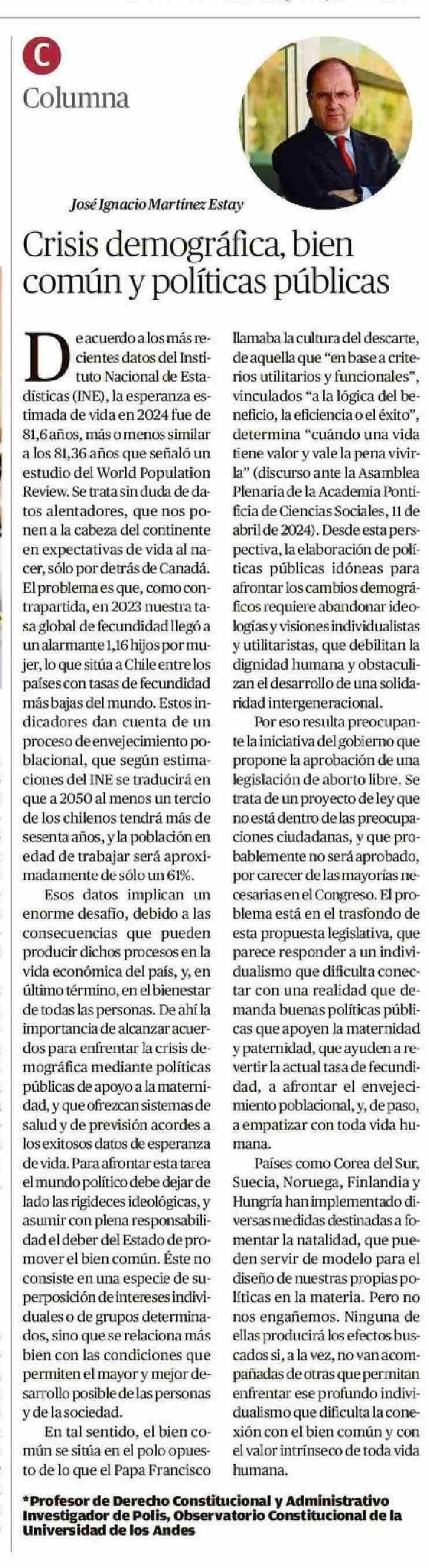 | Título: | Columnas de Opinión: Crisis demográfica, bien común y políticas públicas |