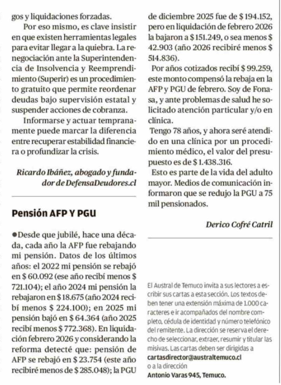 Título: Cartas: Pensión AFP Y PGU