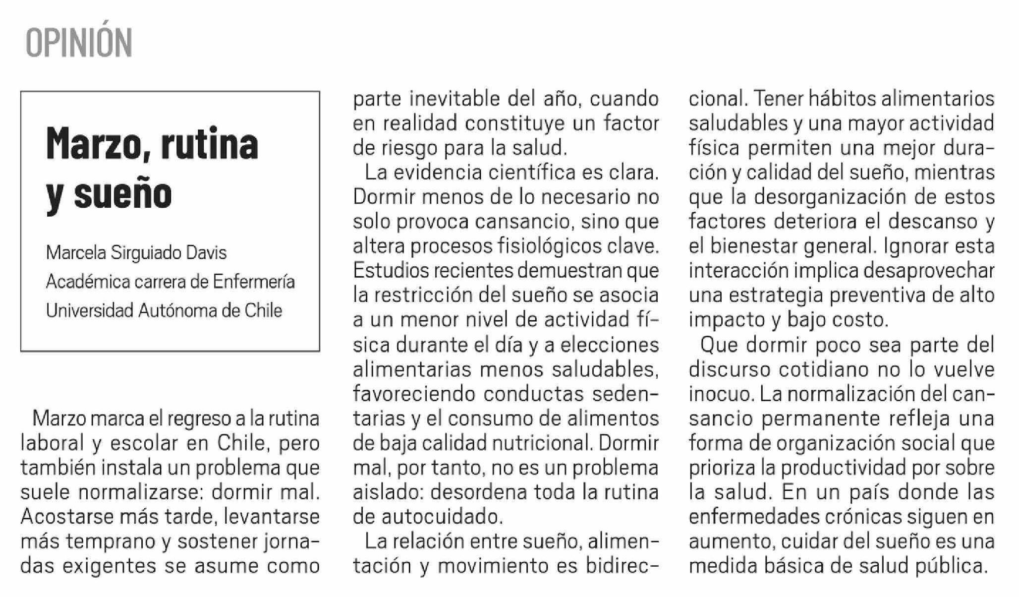 Título: Columnas de Opinión: Marzo, rutina y sueño
