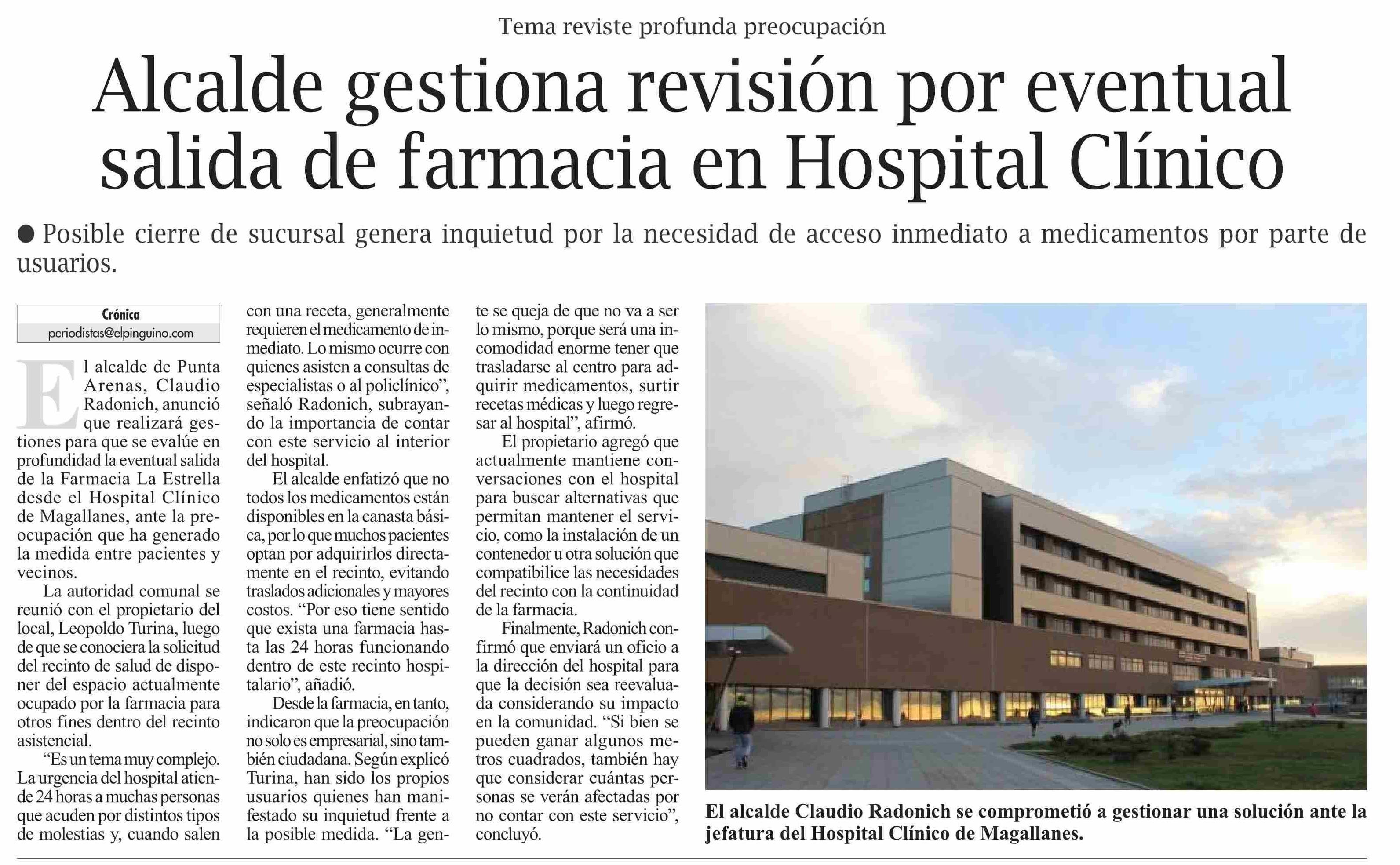 Título: Alcalde gestiona revisión por eventual salida de farmacia en Hospital Clínico