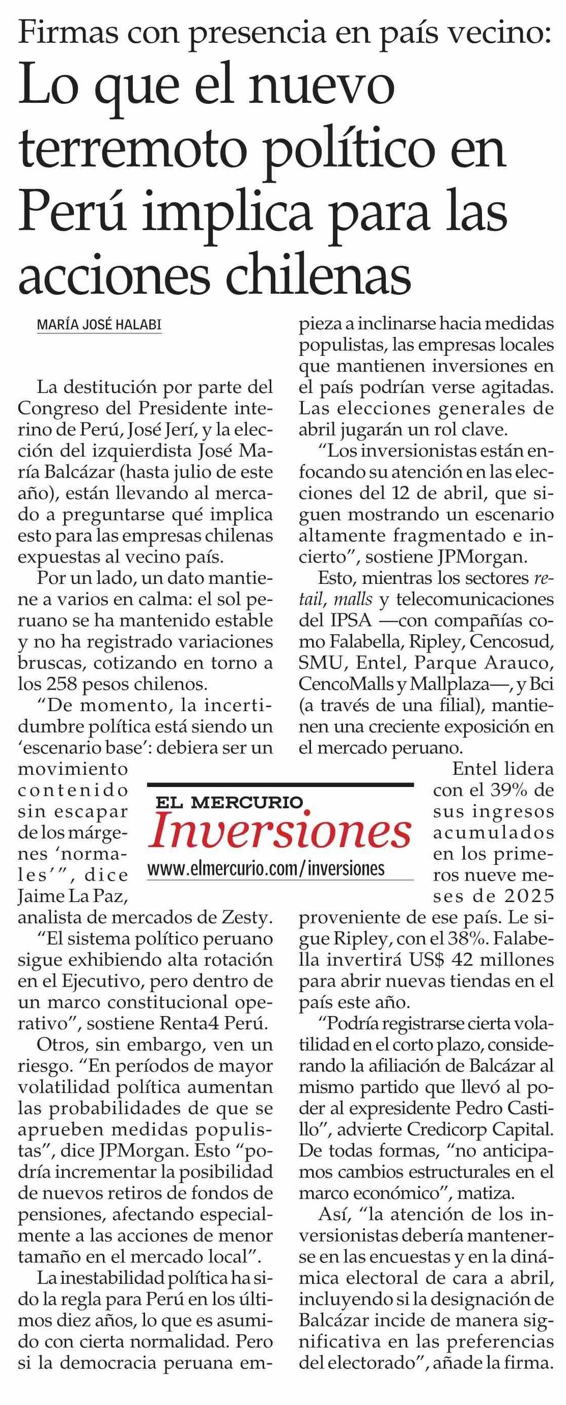 Título: Lo que el nuevo terremoto político en Perú implica para las acciones chilenas