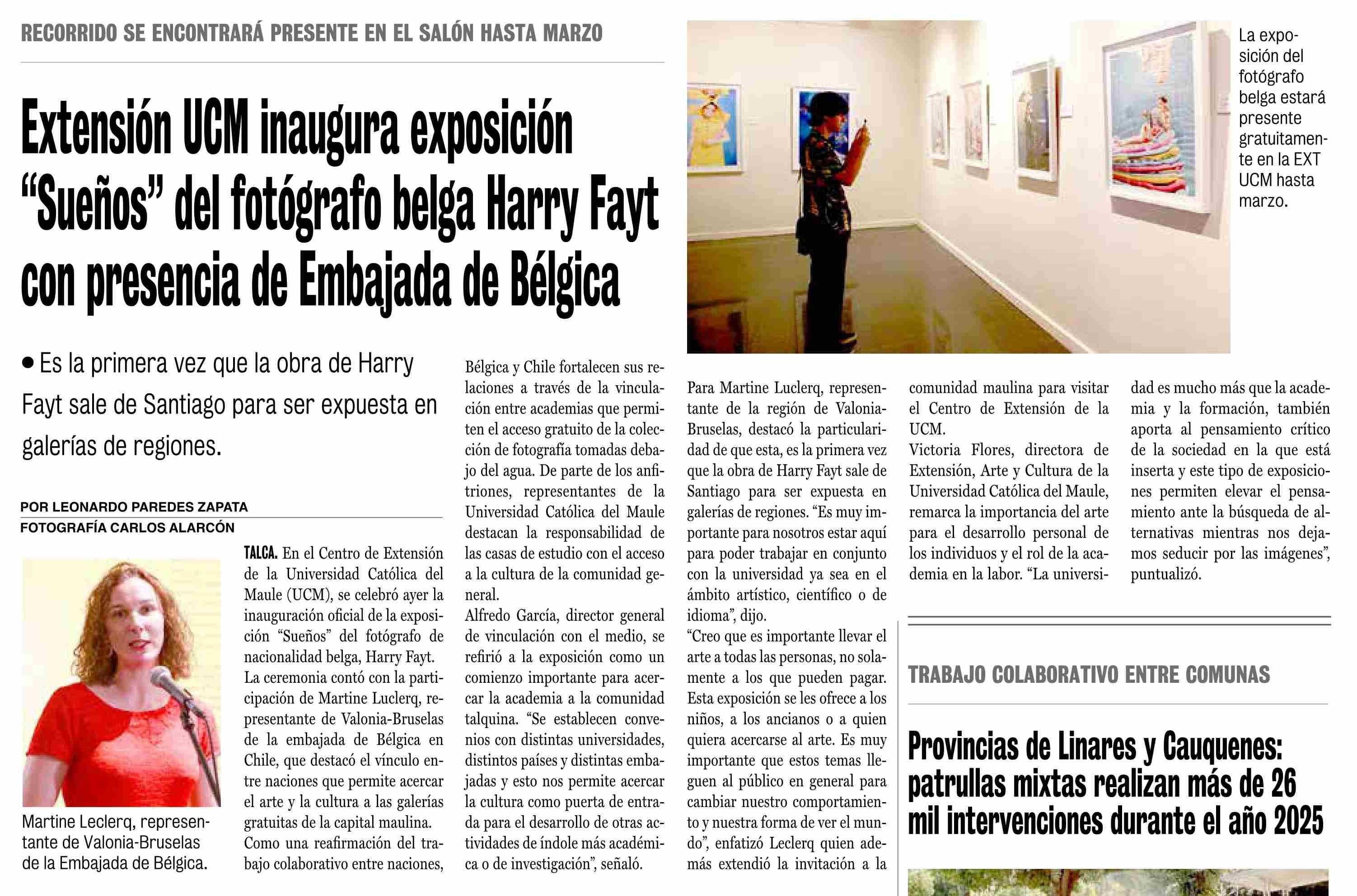 Extensión UCM inaugura exposición "Sueños" del fotógrafo belga Harry Fayt con presencia de Embajada de Bélgica 20-01-2026 La Prensa de Curicó |