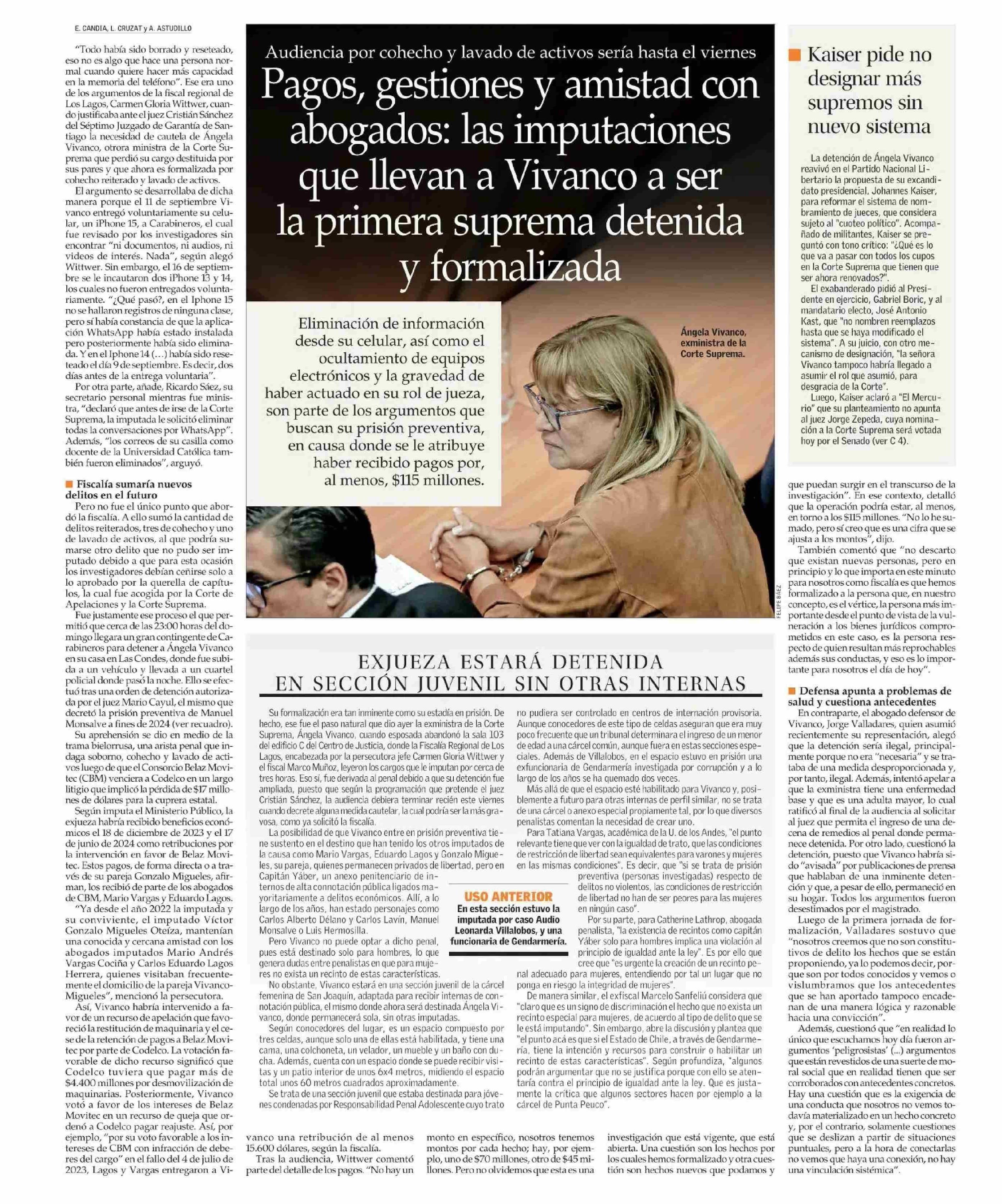 Título: Pagos, gestiones y amistad con abogados: las imputaciones que llevan a Vivanco a ser la primera suprema detenida y formalizada
