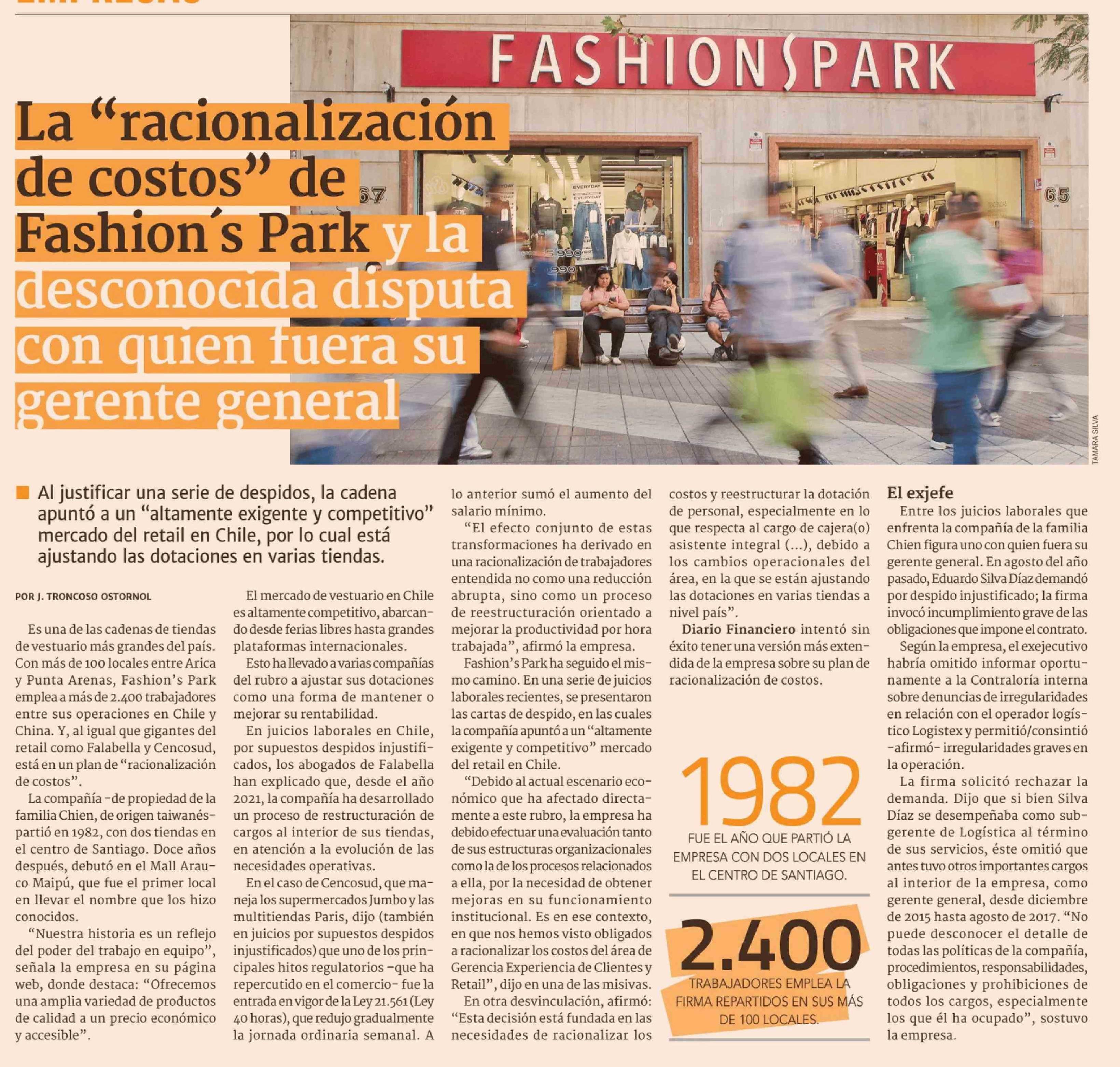 La "racionalización de costos" de Fashion's Park y la desconocida disputa con quien fuera su gerente general 13-03-2026 Diario Financiero |