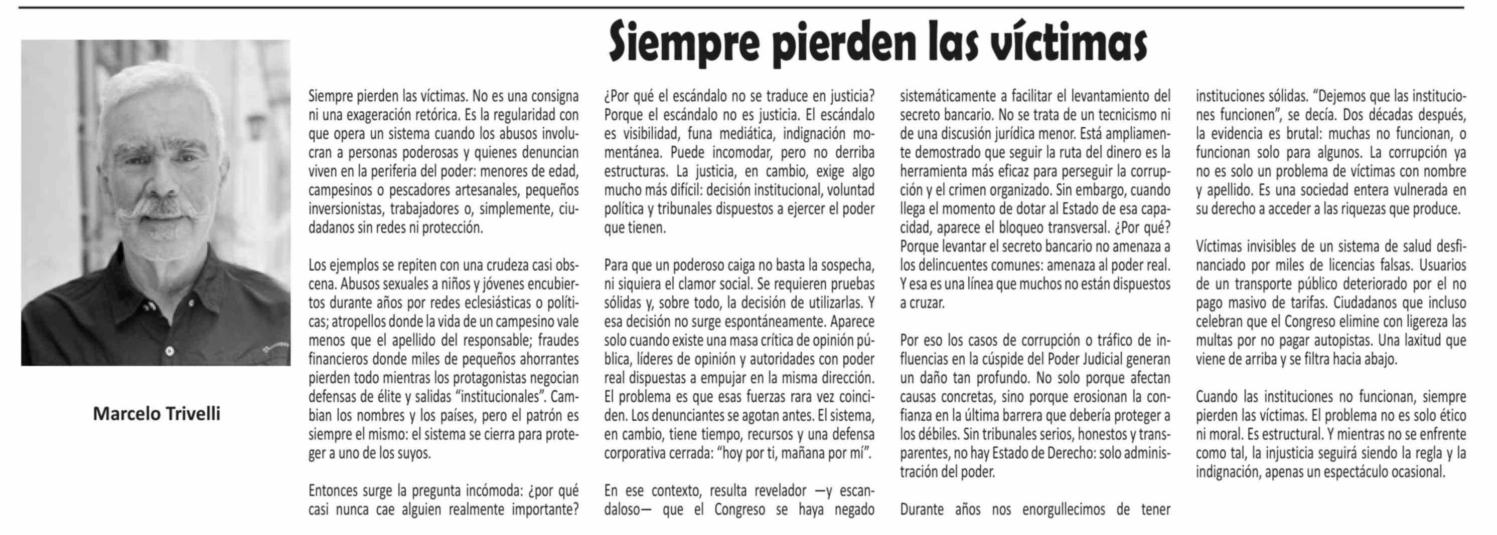 Columnas de Opinión: Siempre pierden las víctimas