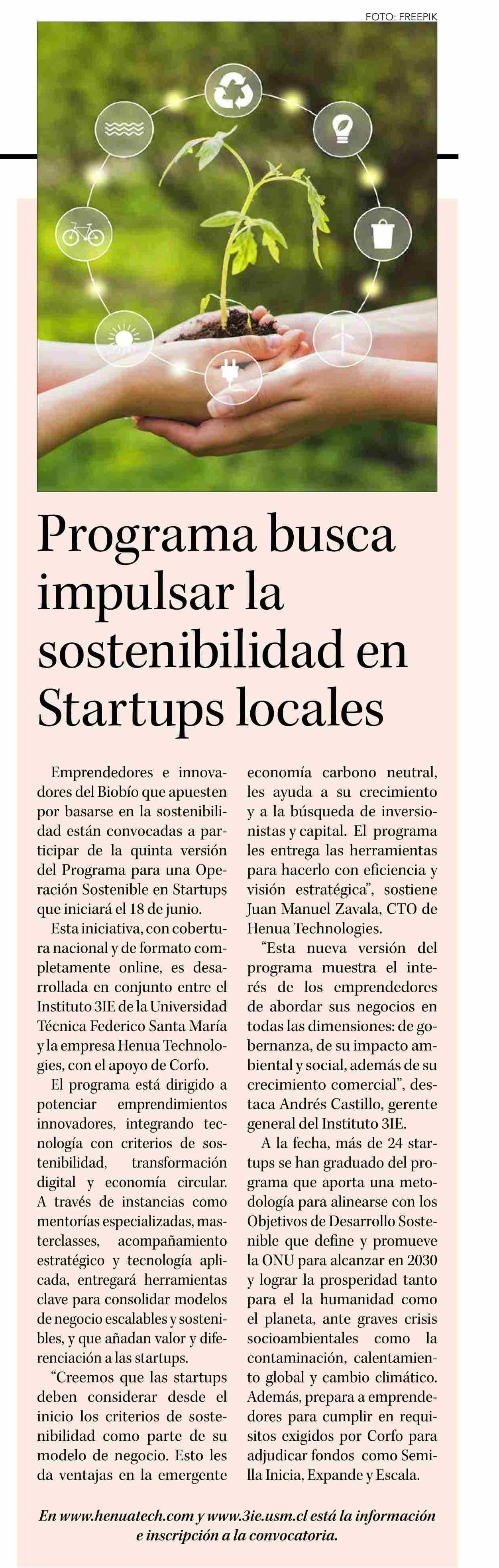 Programa busca impulsar la sostenibilidad en Startups locales 05-06-2025 Diario Concepción |