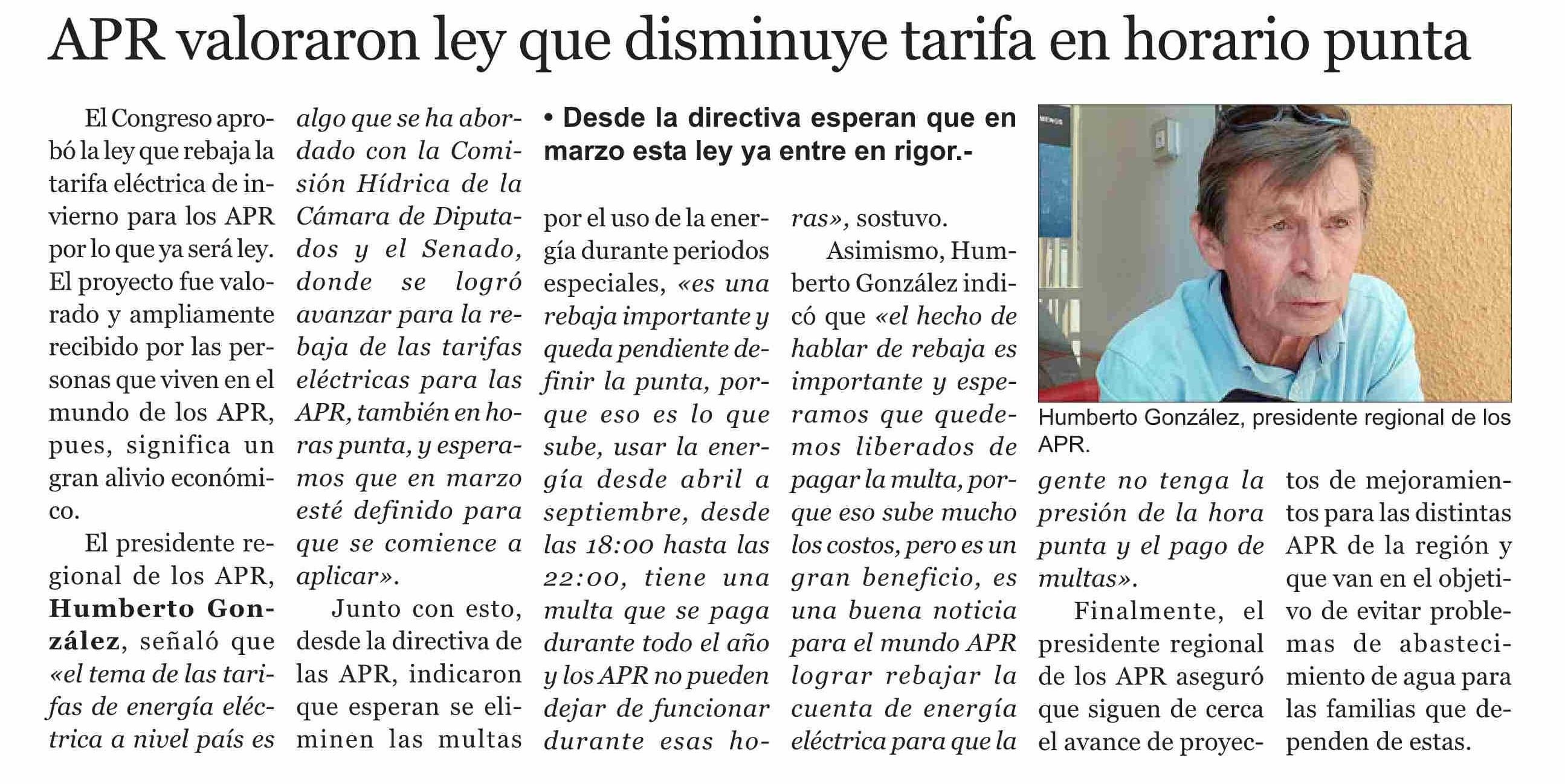 APR valoraron ley que disminuye tarifa en horario punta 12-02-2024 El Trabajo |