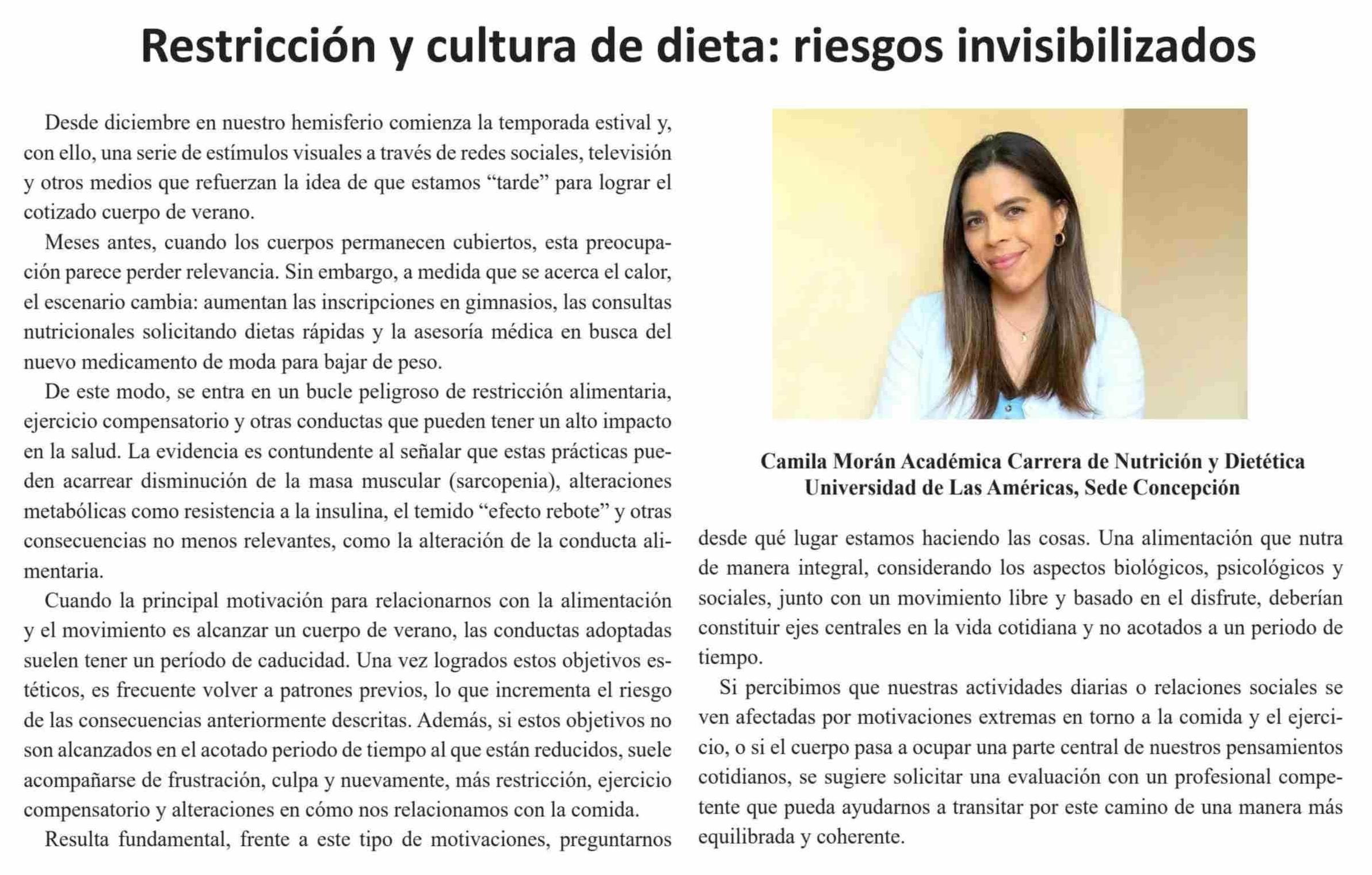 Columnas de Opinión: Restricción y cultura de dieta: riesgos invisibilizados 15-01-2026 El Heraldo |