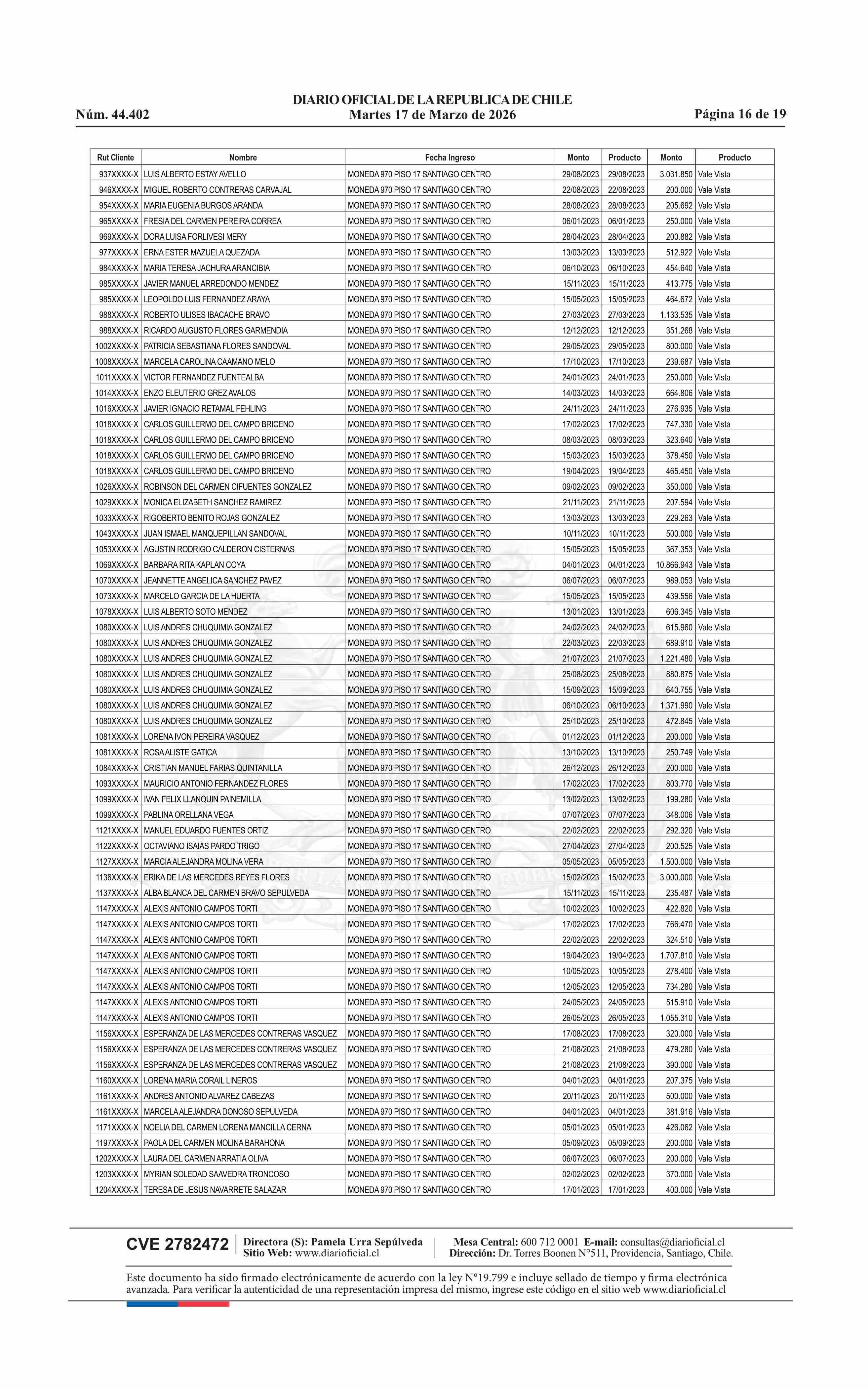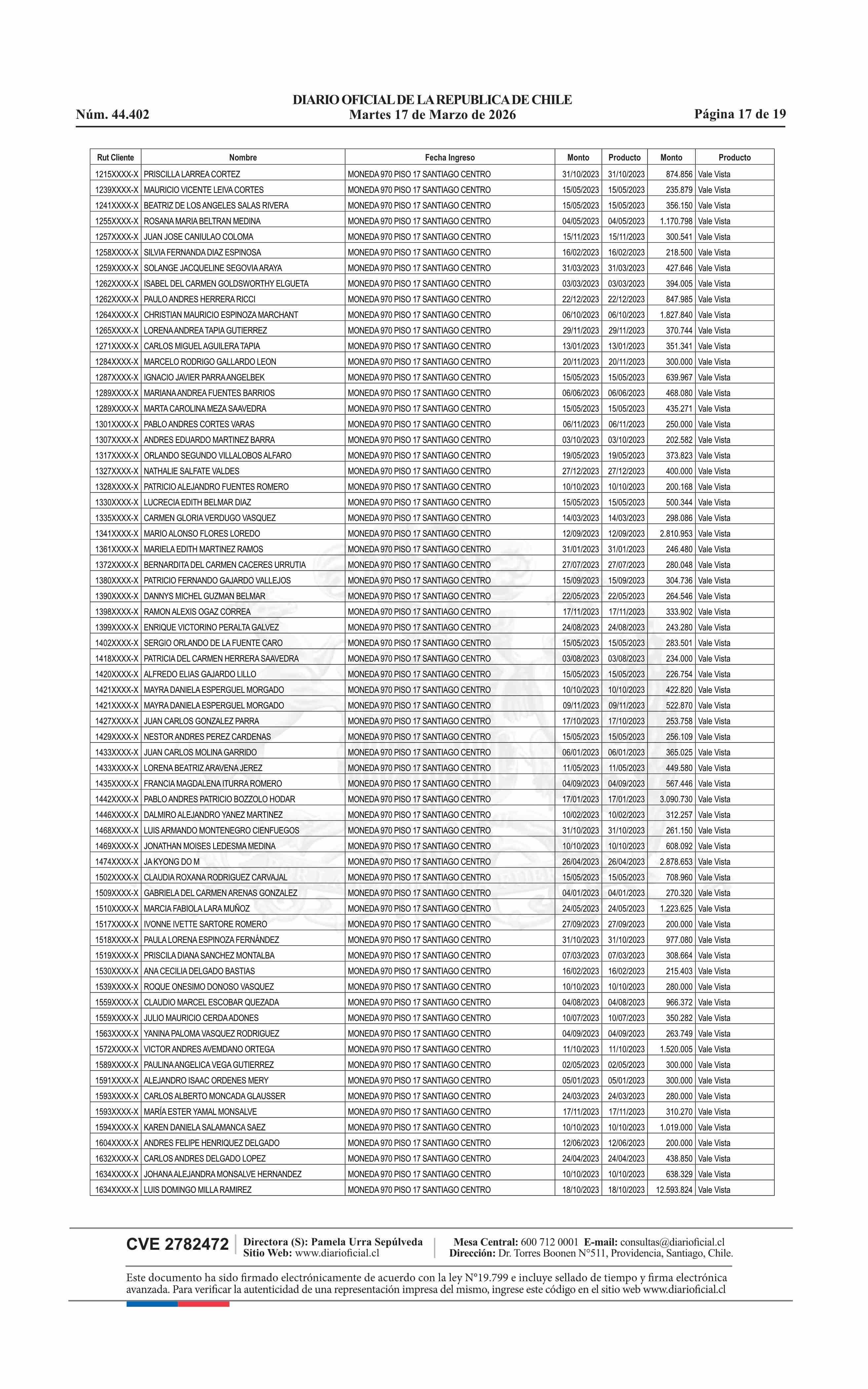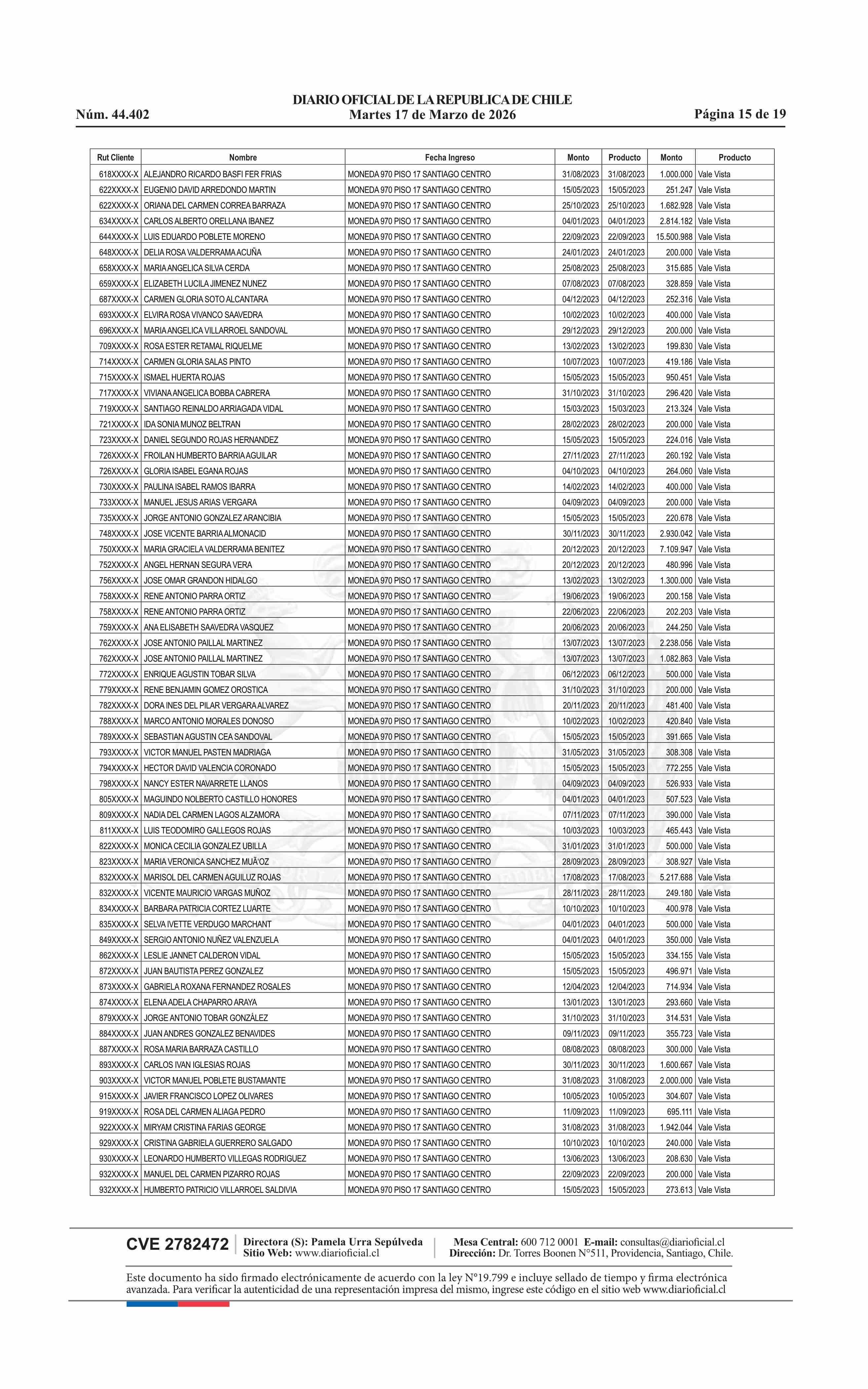 Fuente: Diario Oficial Edición Electrónica (Diario Oficial de Chile - 4 Avisos Destacados) Página(s): 15-33