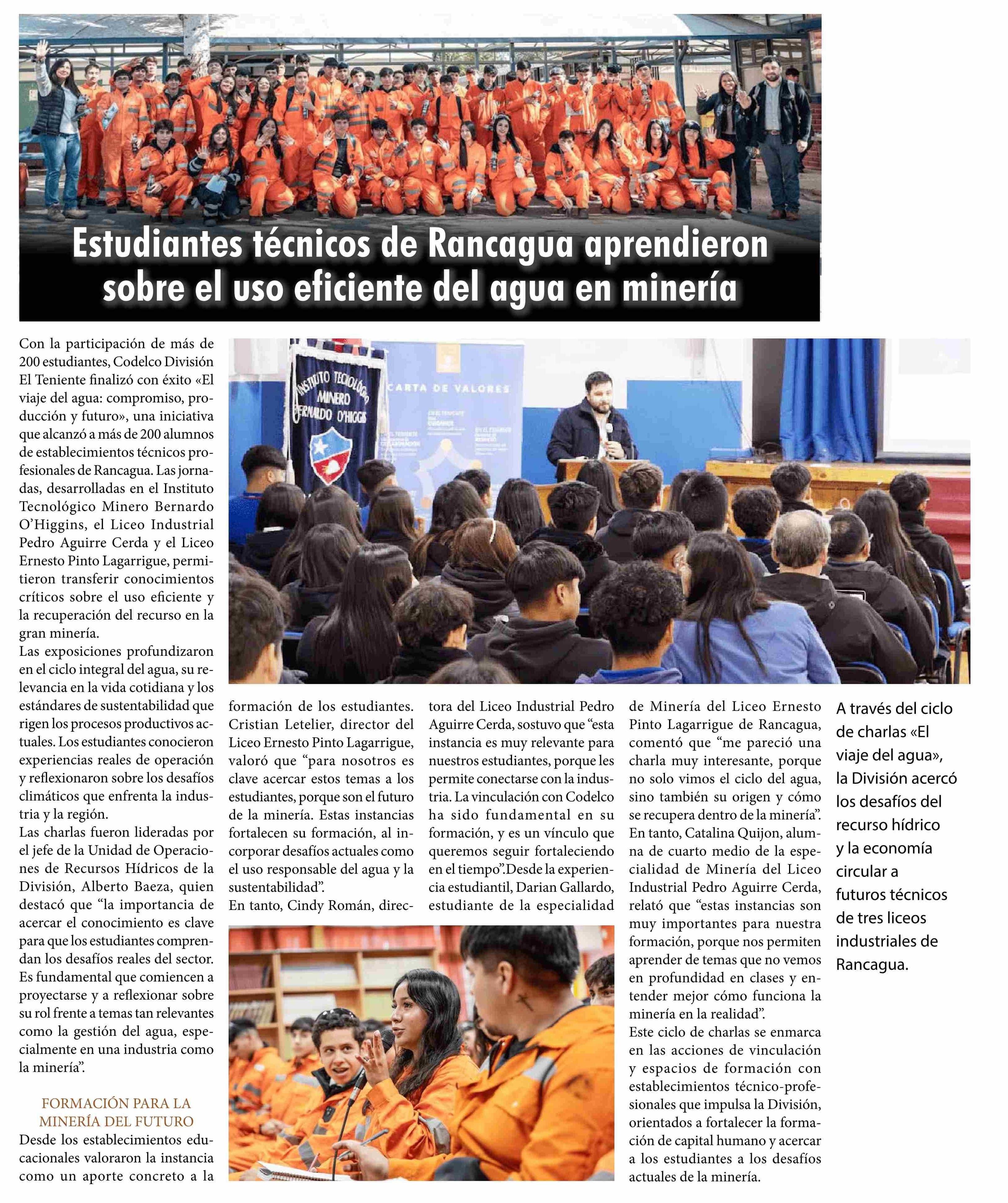 Título: Estudiantes técnicos de Rancagua aprendieron sobre el uso eficiente del agua en minería
