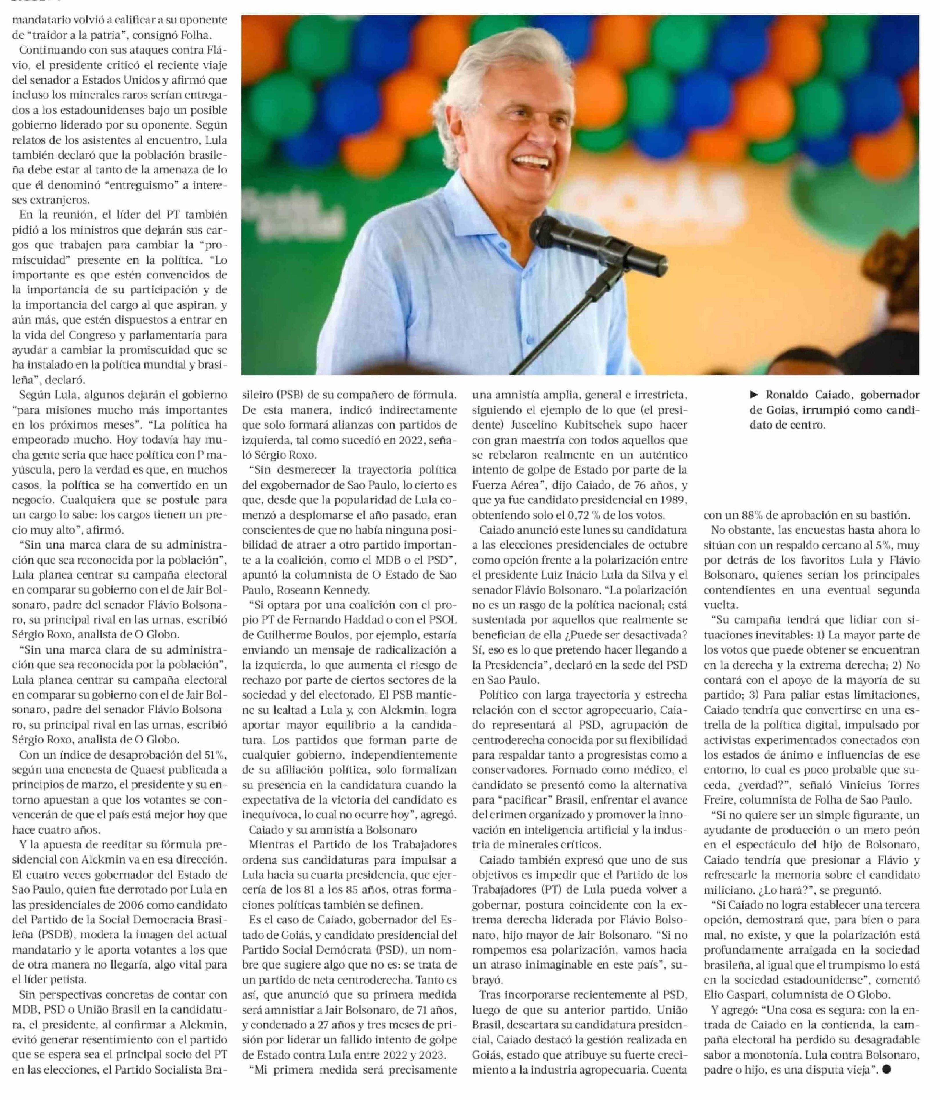 Elecciones en Brasil: la apuesta de Lula en medio de la irrupción de un candidato de centro 02-04-2026 La Tercera |