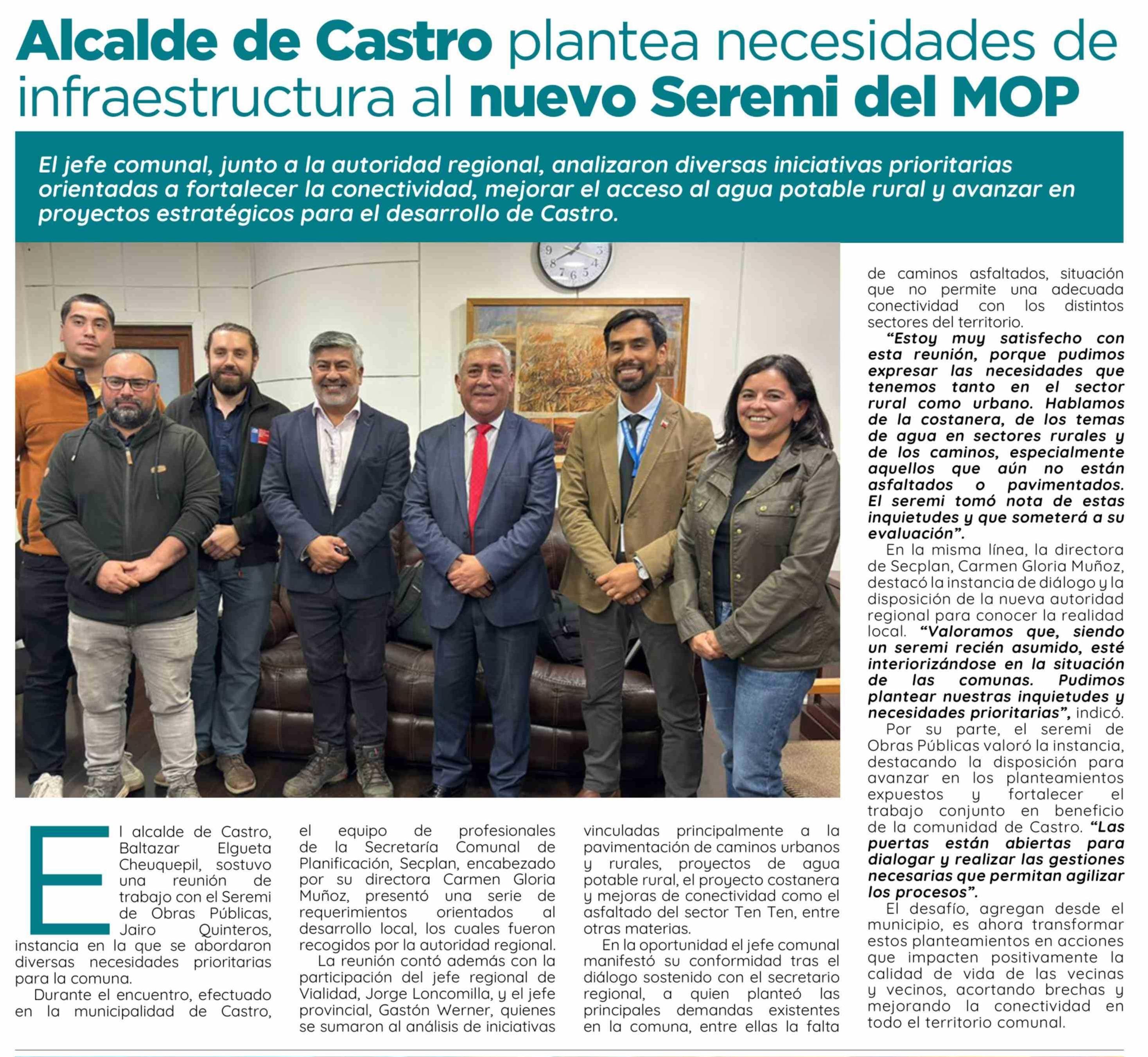 Alcalde de Castro plantea necesidades de infraestructura al nuevo Seremi del MOP 10-04-2026 El Insular |