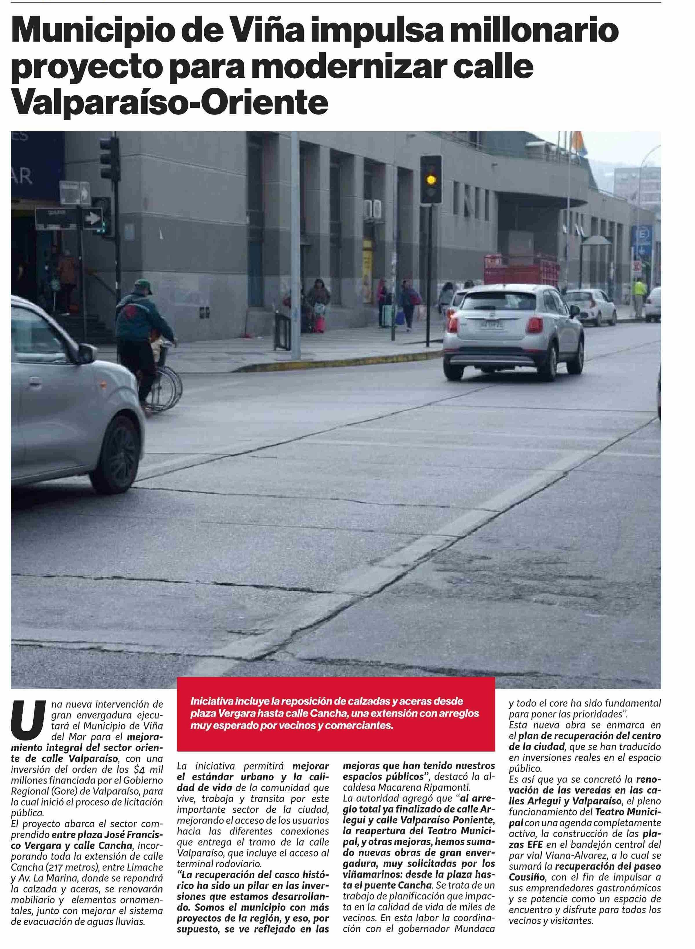 Municipio de Viña impulsa millonario proyecto para modernizar calle Valparaíso-Oriente 06-04-2026 Puranoticia.cl |