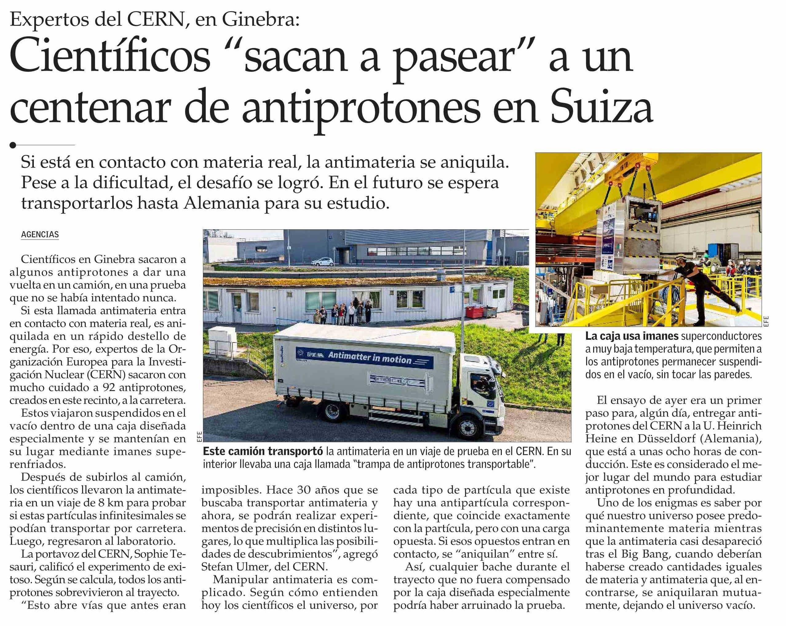 Científicos “sacan a pasear” a un centenar de antiprotones en Suiza 25-03-2026 El Mercurio |
