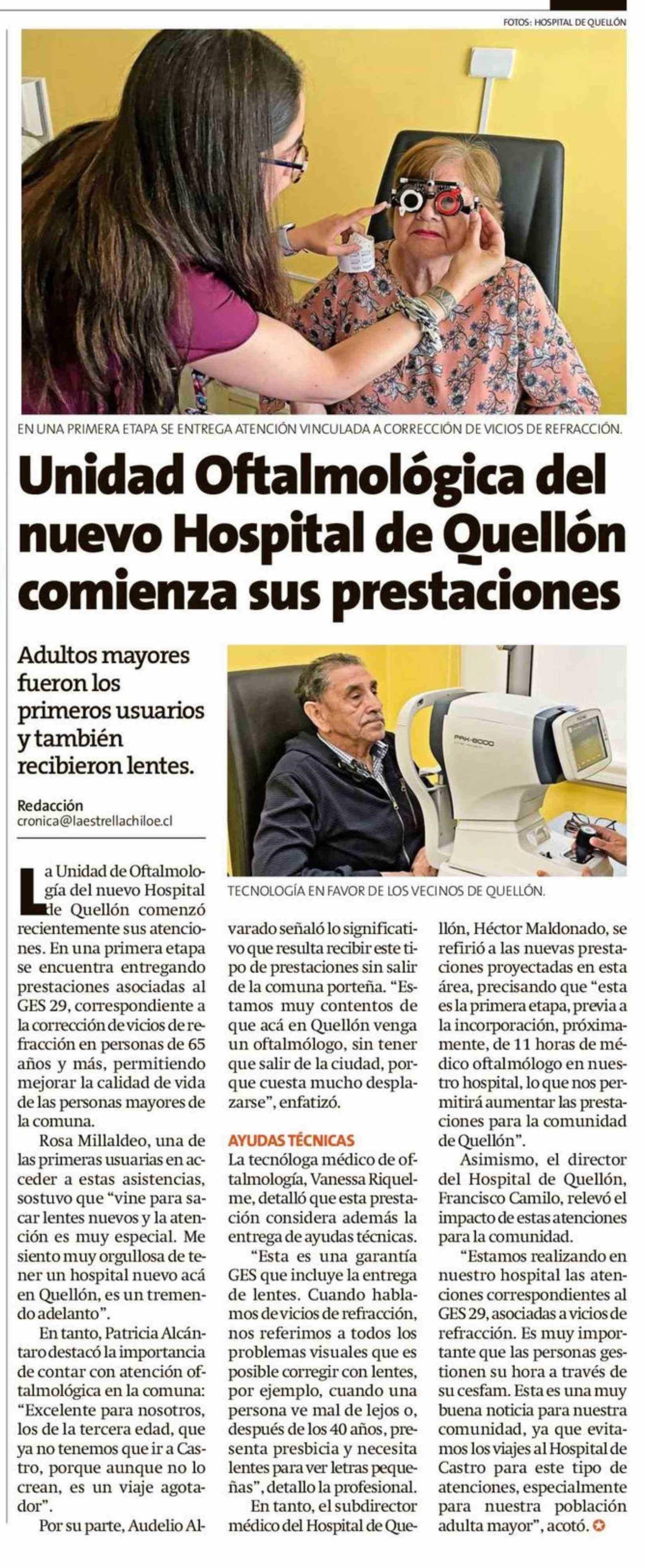 Título: Unidad Oftalmológica del nuevo Hospital de Quellón comienza sus prestaciones