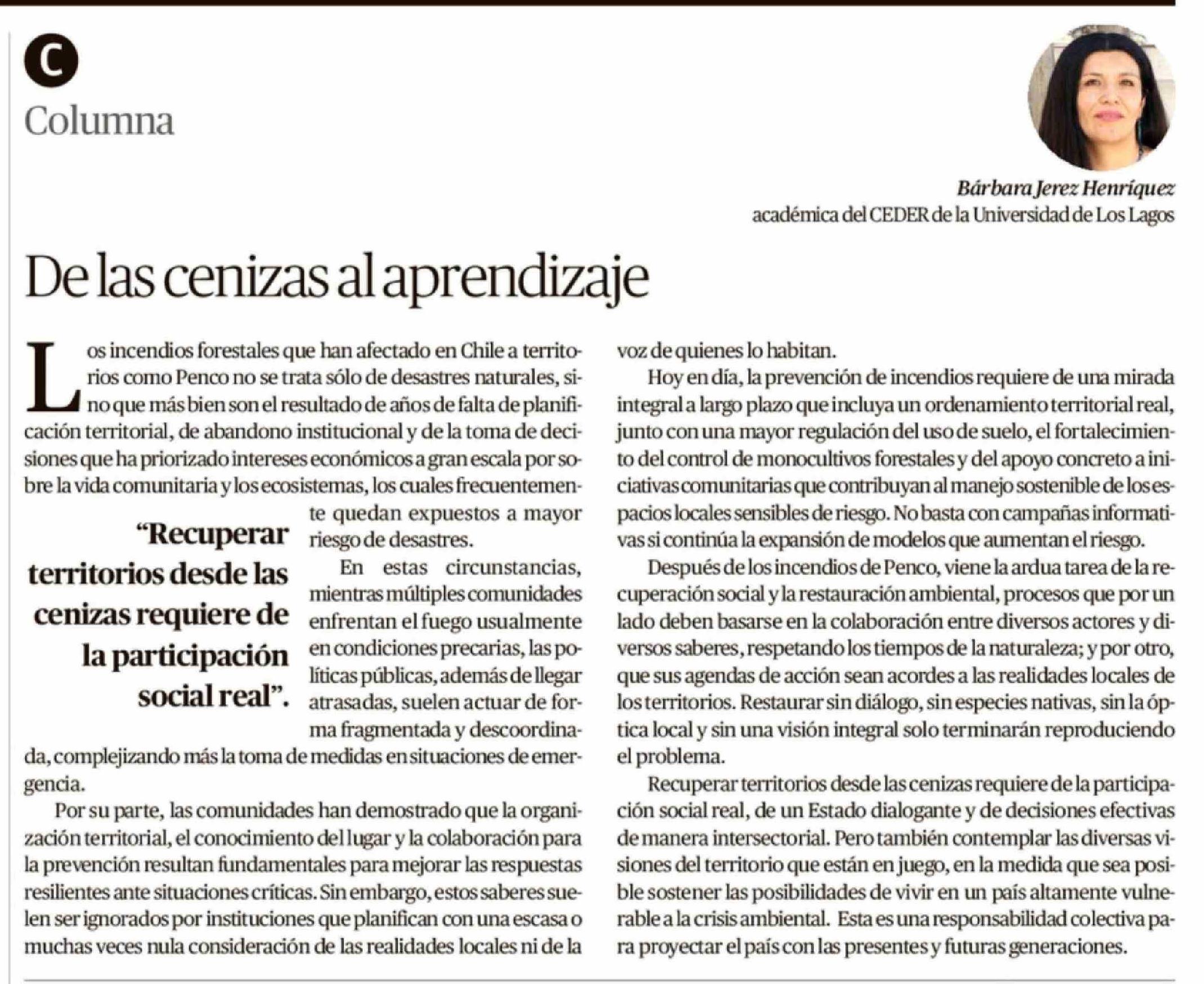Columnas de Opinión: De las cenizas al aprendizaje 12-02-2026 El Austral de Osorno |
