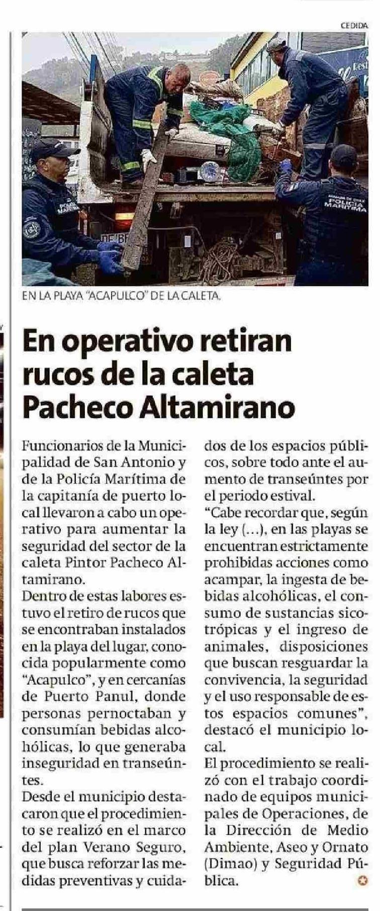 | Título: | En operativo retiran rucos de la caleta Pacheco Altamirano |