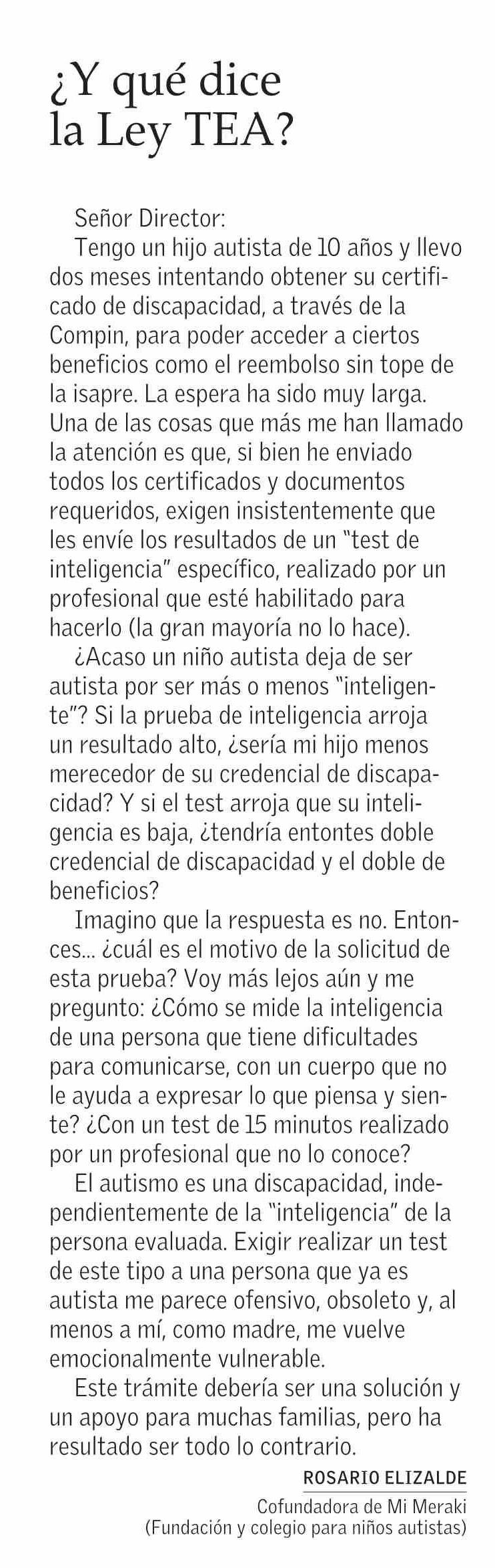 ¿Y qué dice la Ley TEA? 10-08-2023 El Mercurio |