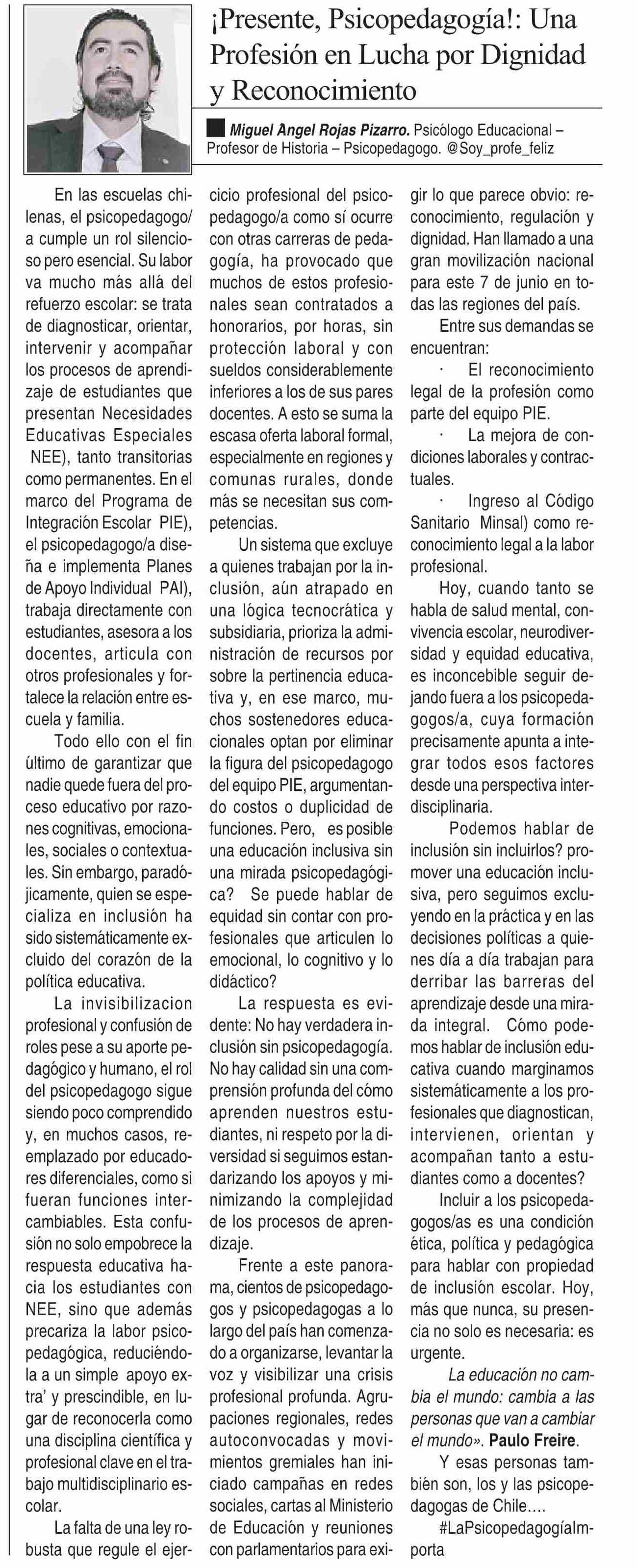 Título: COLUMNAS DE OPINIÓN: ¡Presente, Psicopedagogía!: Una Profesión en Lucha por Dignidad y Reconocimiento