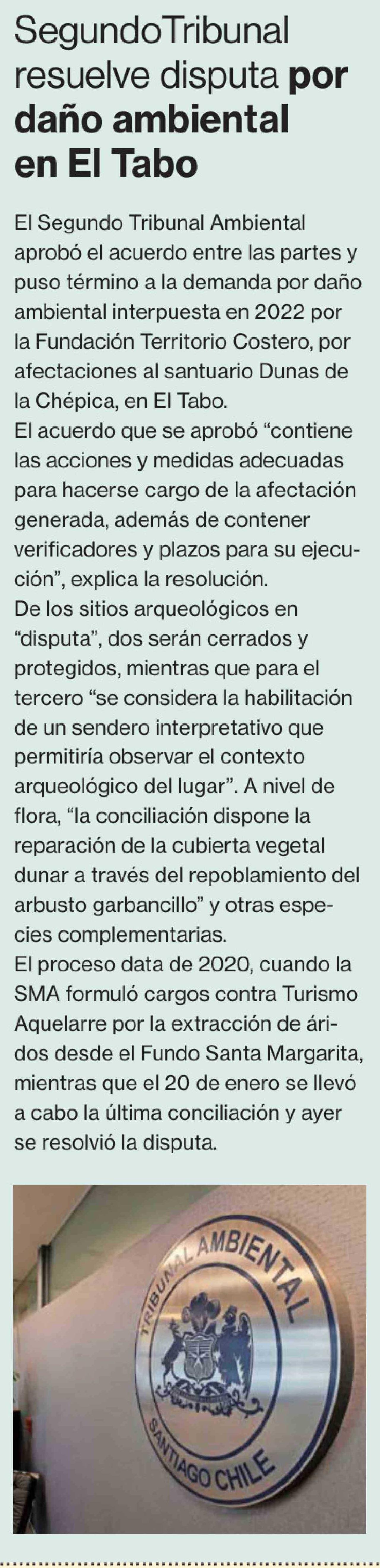 Segundo Tribunal resuelve disputa por daño ambiental en El Tabo 03-02-2026 La Segunda |