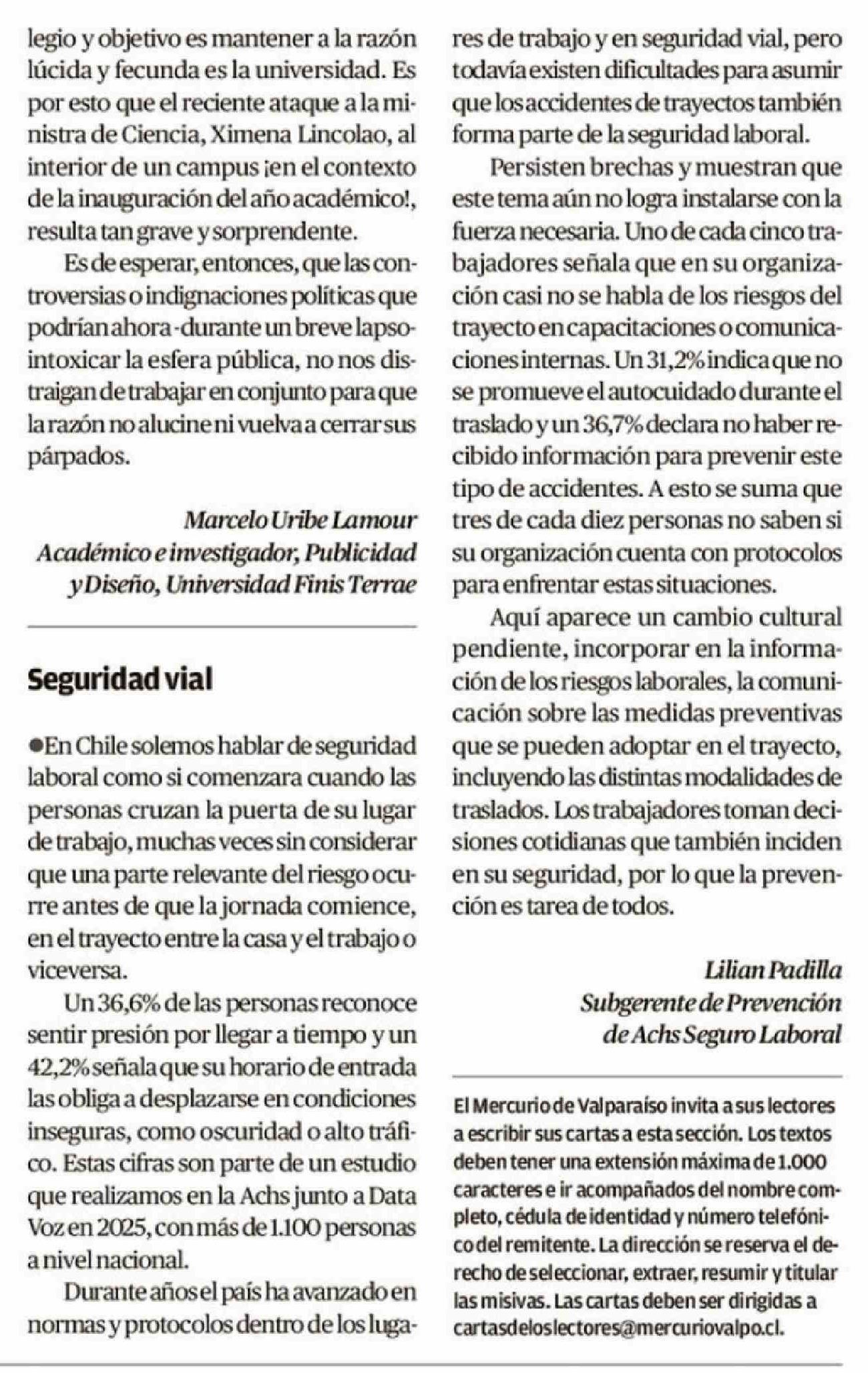 Cartas: Seguridad vial 15-04-2026 El Mercurio de Valparaíso |