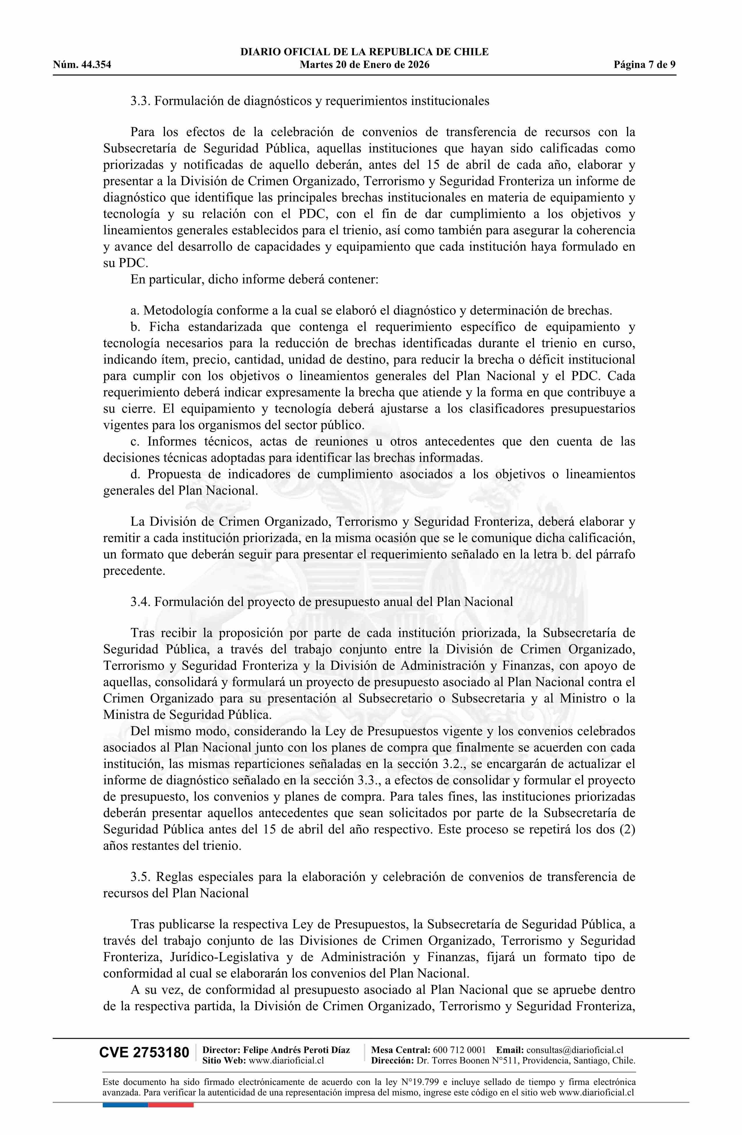 Resolución exenta número 2.530, de 2025.- Deja sin efecto resolución N° 6.348 exenta, de 2022, de la Subsecretaría del Interior, y aprueba Plan Nacional contra el Crimen Organizado 20-01-2026 DIARIO OFICIAL CHILE - BOLETÍN OFICIAL DE MINERÍA |