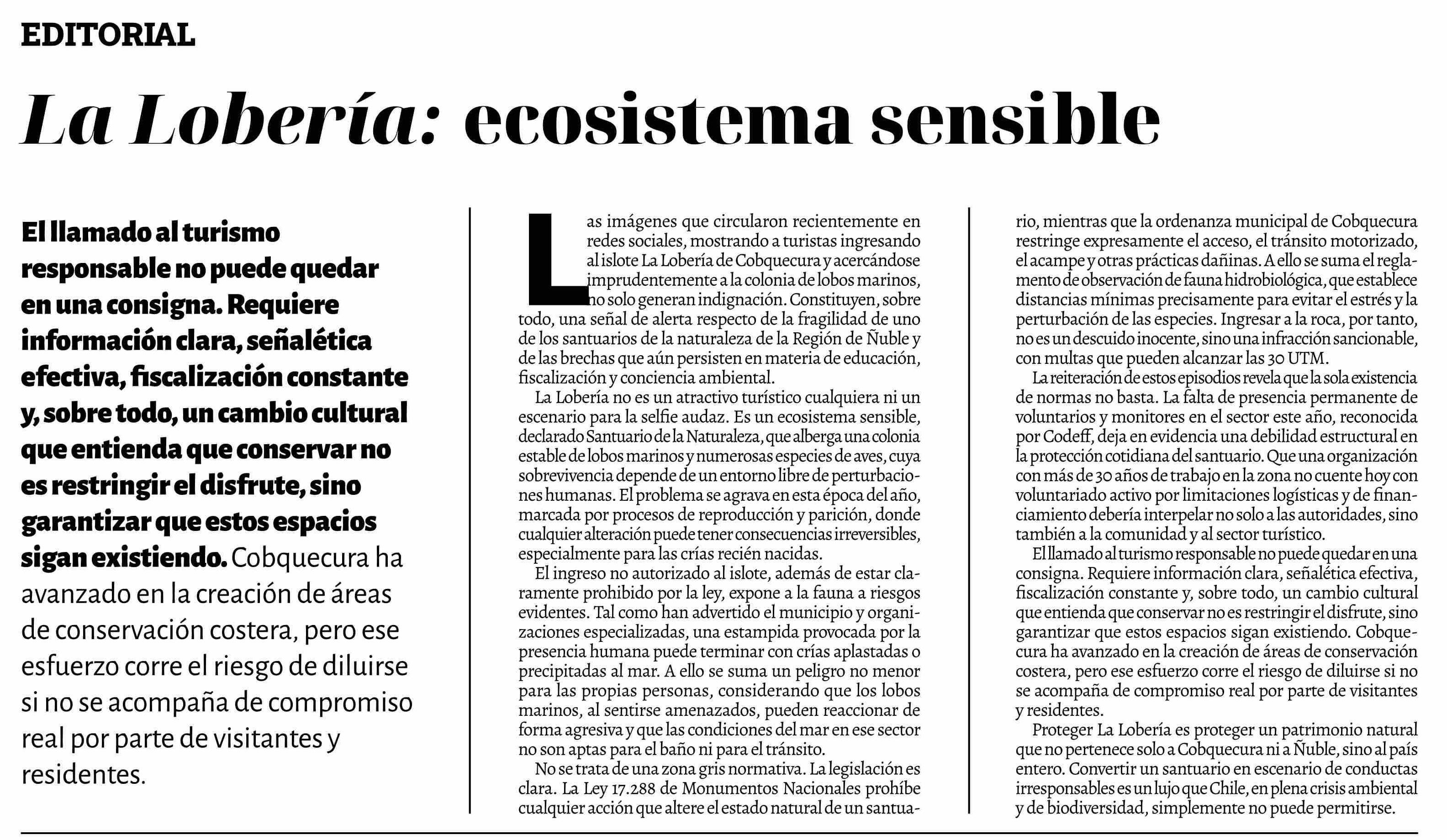 Editorial: La Lobería: ecosistema sensible 08-01-2026 La Discusión |