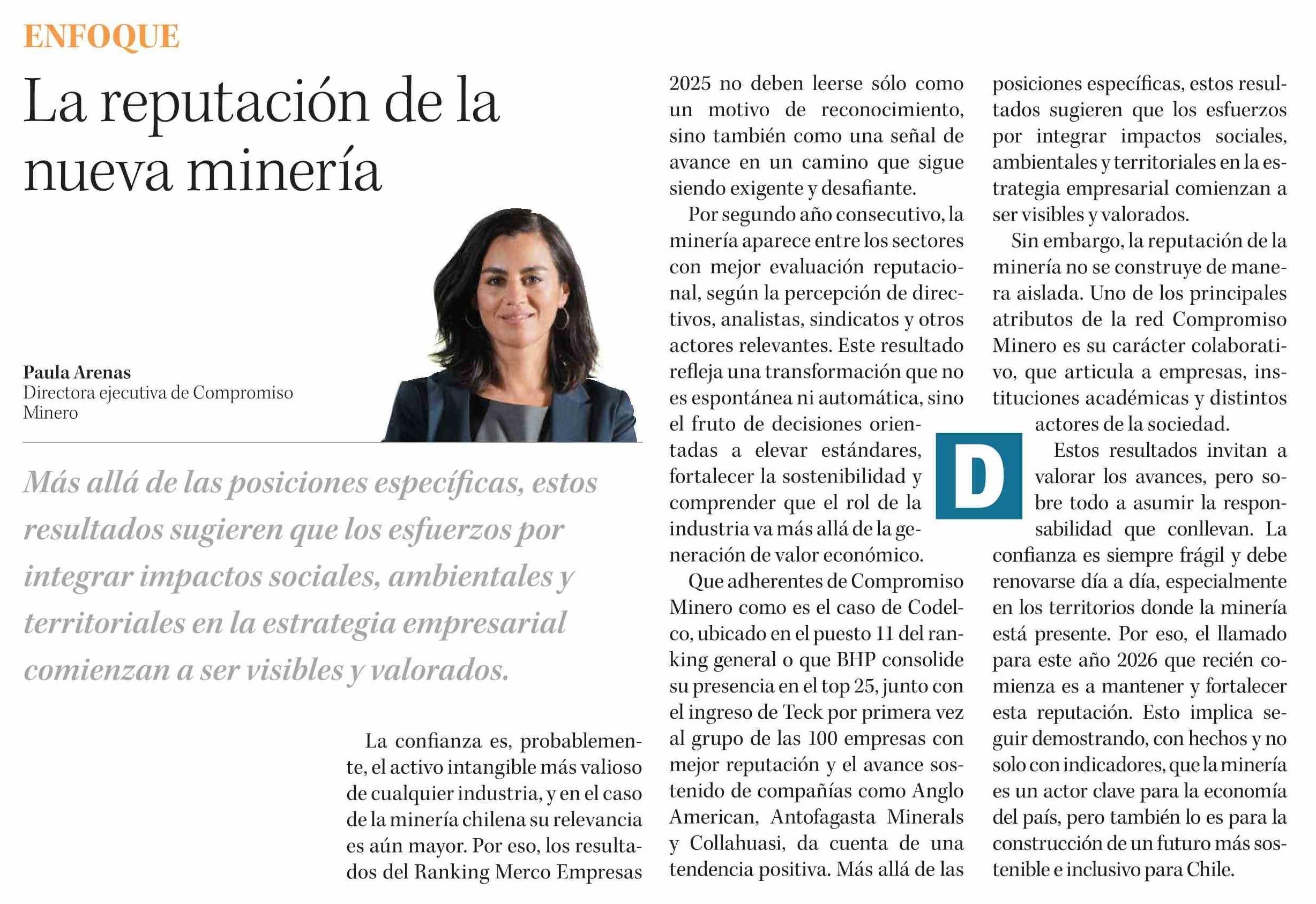 Columnas de Opinión: La reputación de la nueva minería 07-01-2026 Diario Concepción |