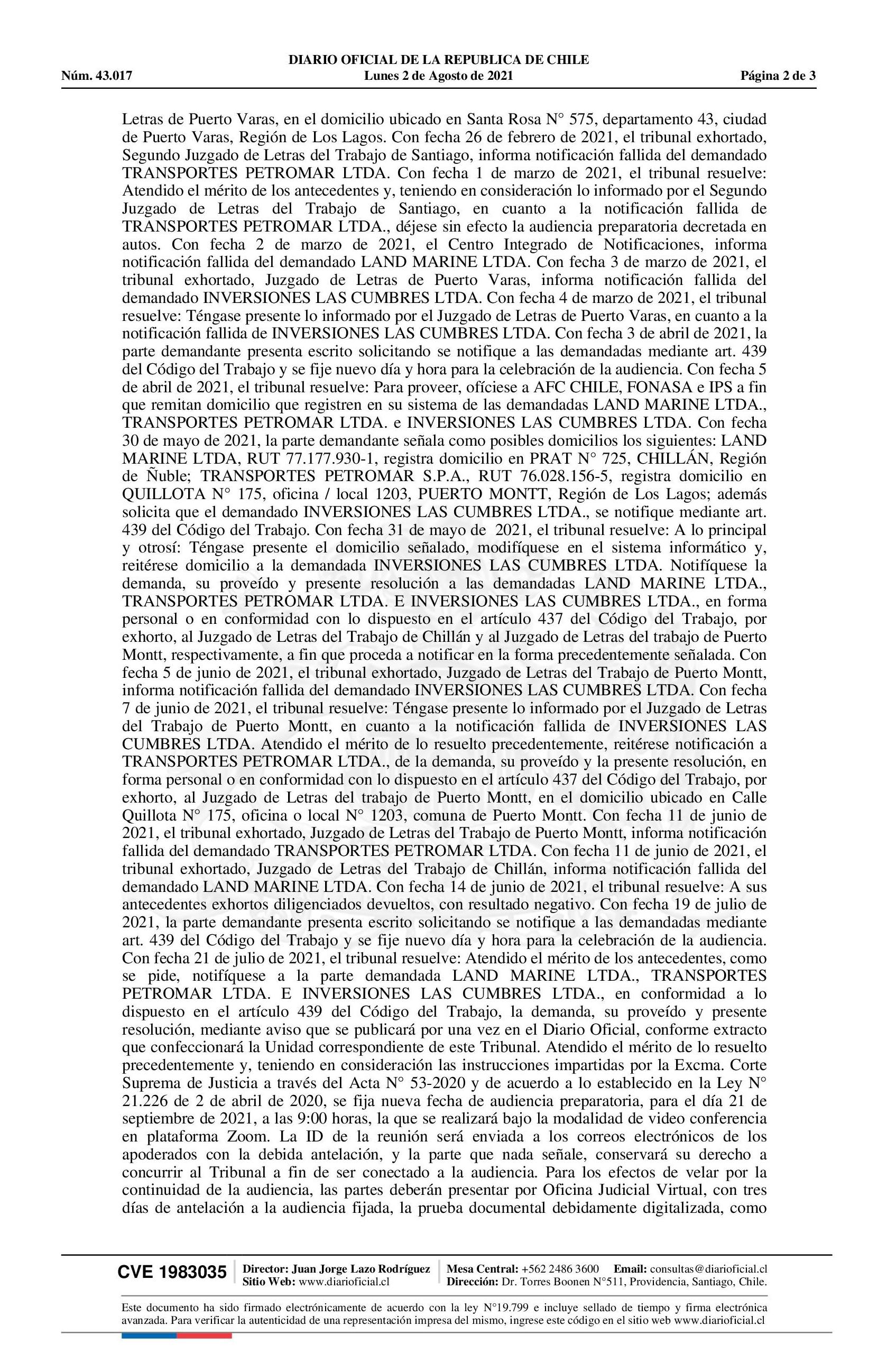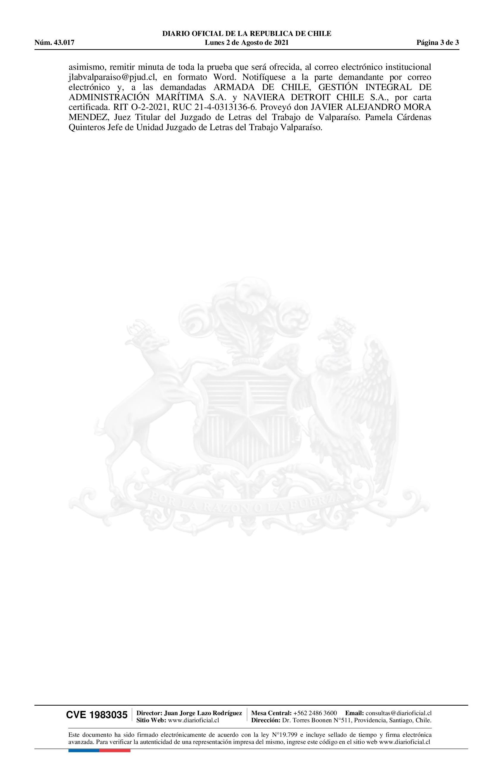 Notificación 02-08-2021 Diario Oficial Edición Electrónica |