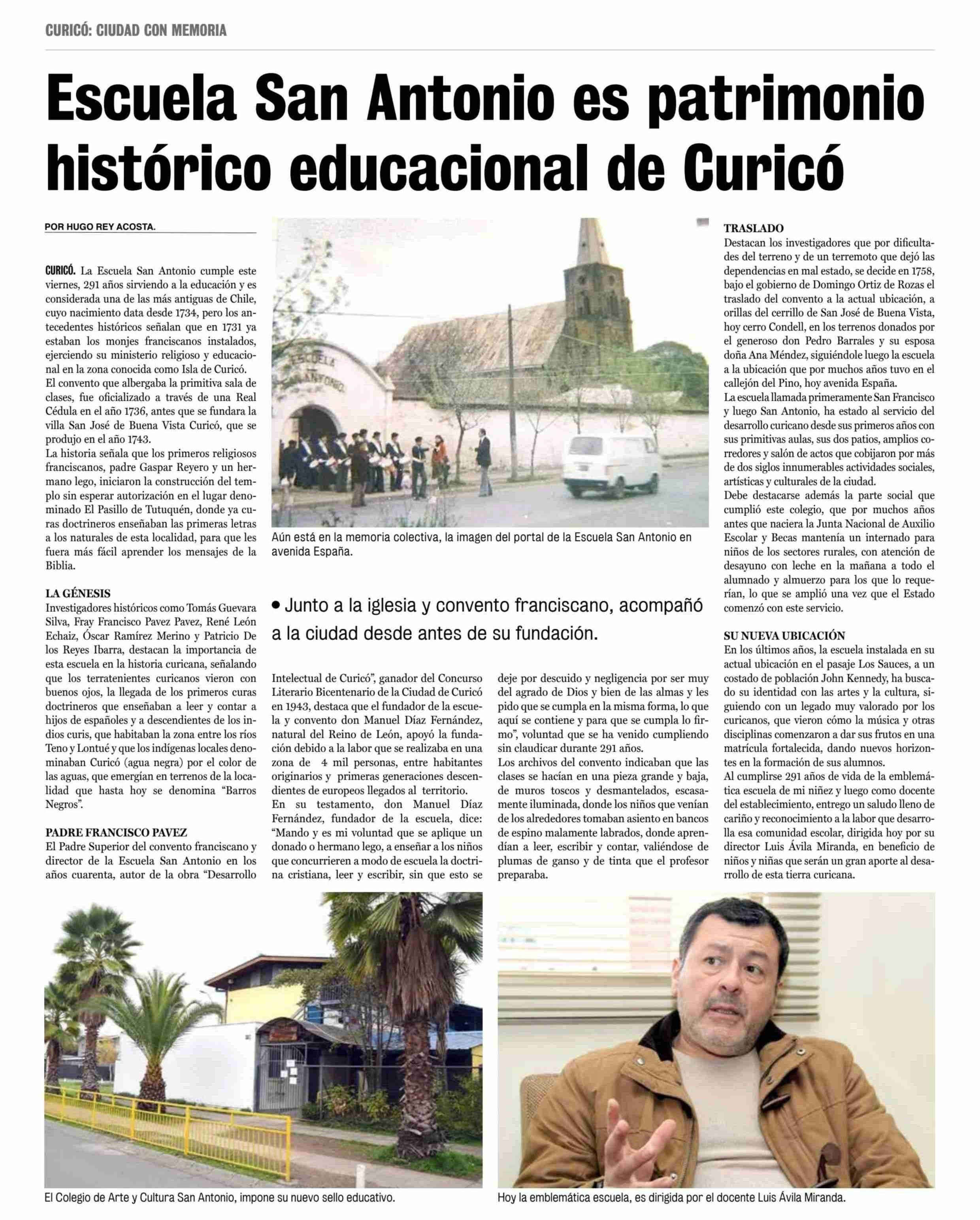 | Título: | Escuela San Antonio es patrimonio histórico educacional de Curicó |