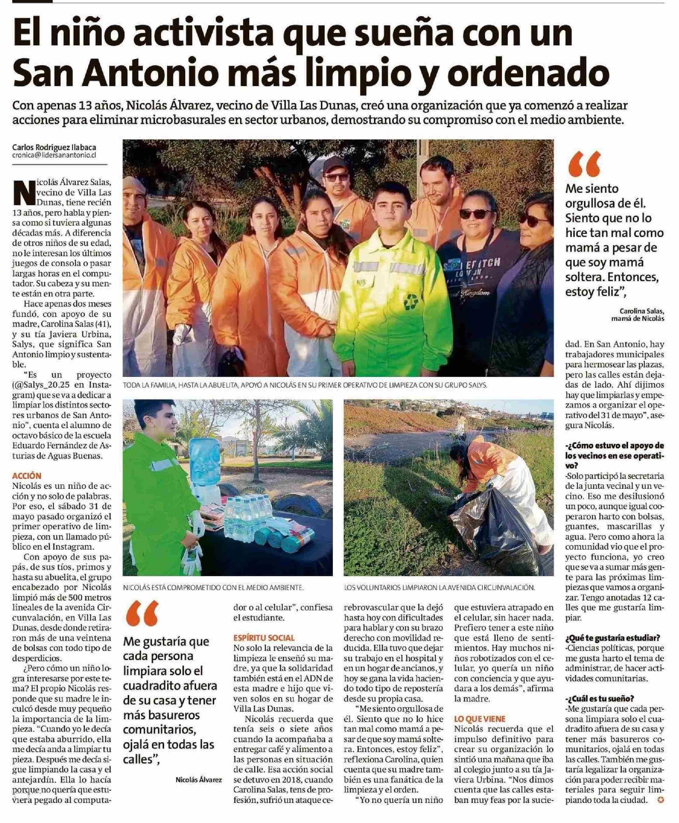 El niño activista que sueña con un San Antonio más limpio y ordenado 08-06-2025 El Líder |