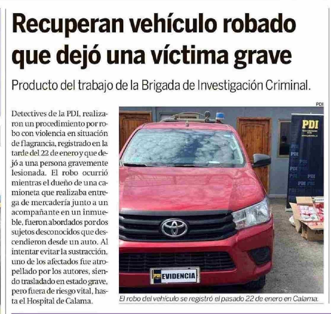 Título: Recuperan vehículo robado que dejó una víctima grave