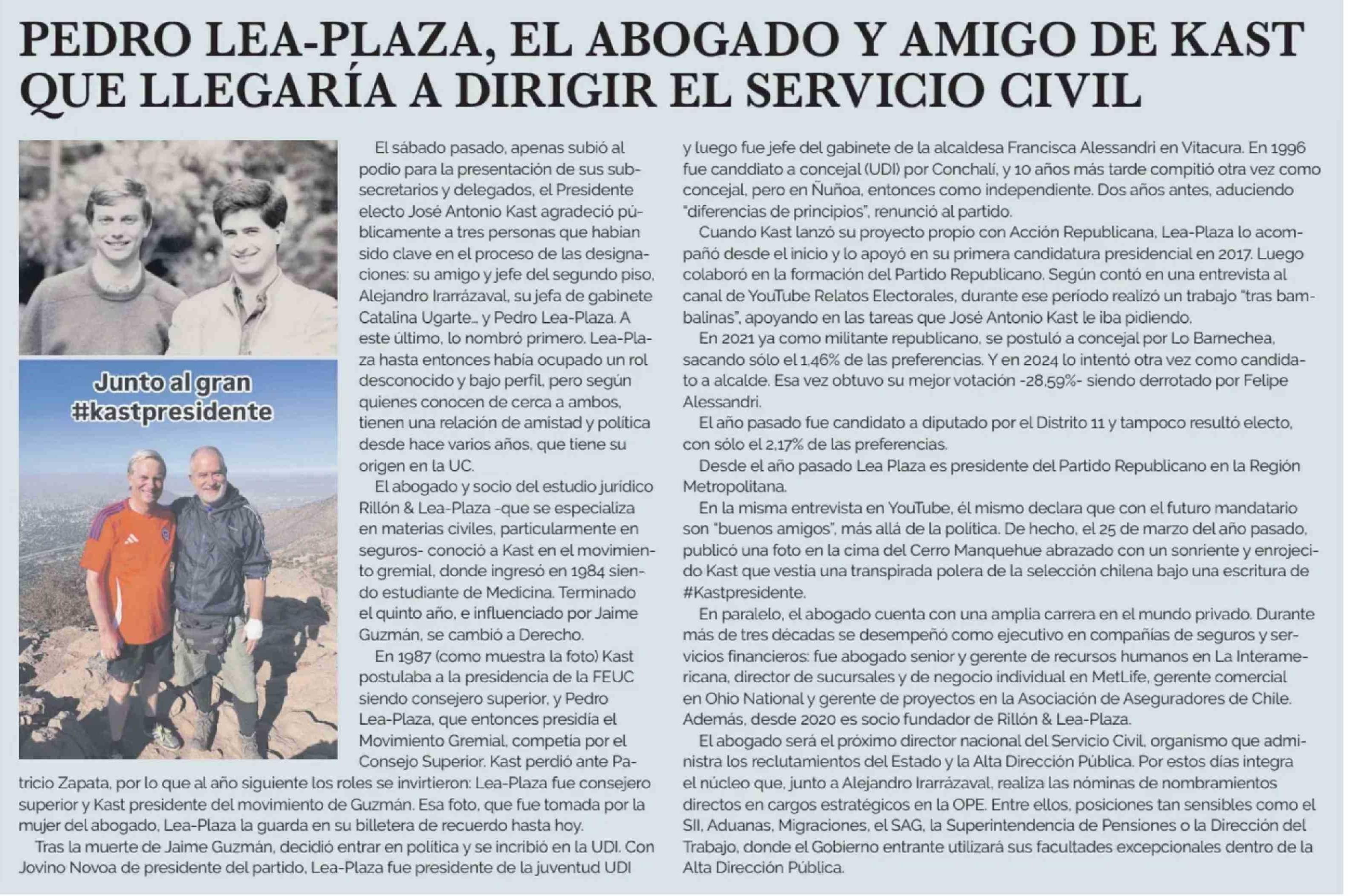 PEDRO LEA-PLAZA, EL ABOGADO Y AMIGO DE KAST QUE LLEGARÍA A DIRIGIR EL SERVICIO CIVIL